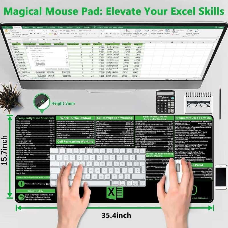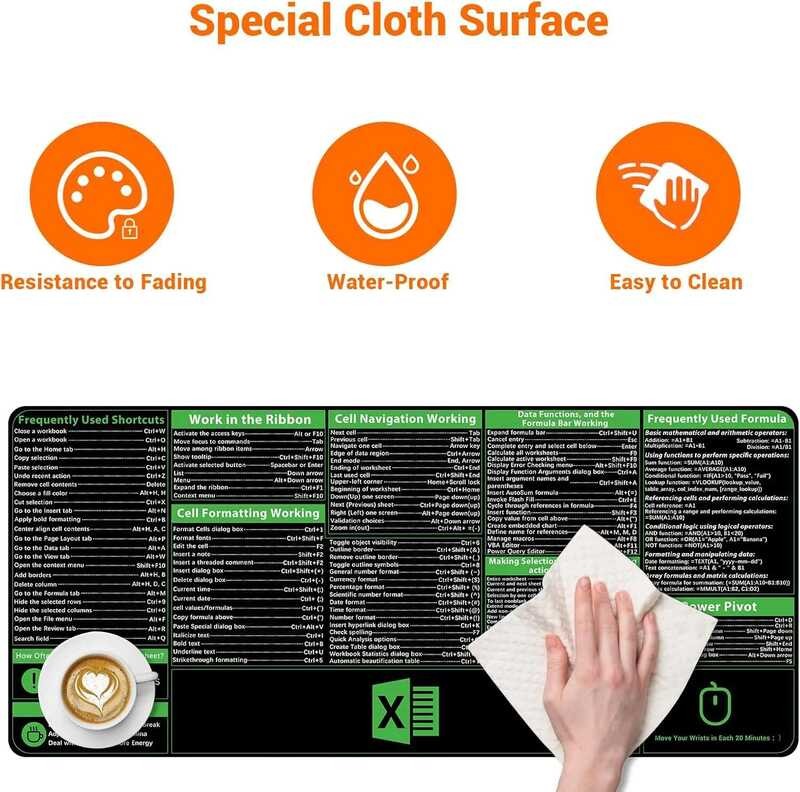 Excel Cheat Sheet Desk Pad, Excel Shortcuts Mousepad Stitched Edges, Non-Slip Base Keyboard Mats, XXL Mouse Pads for Desk Mat