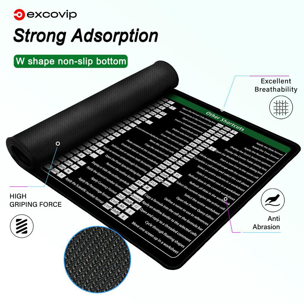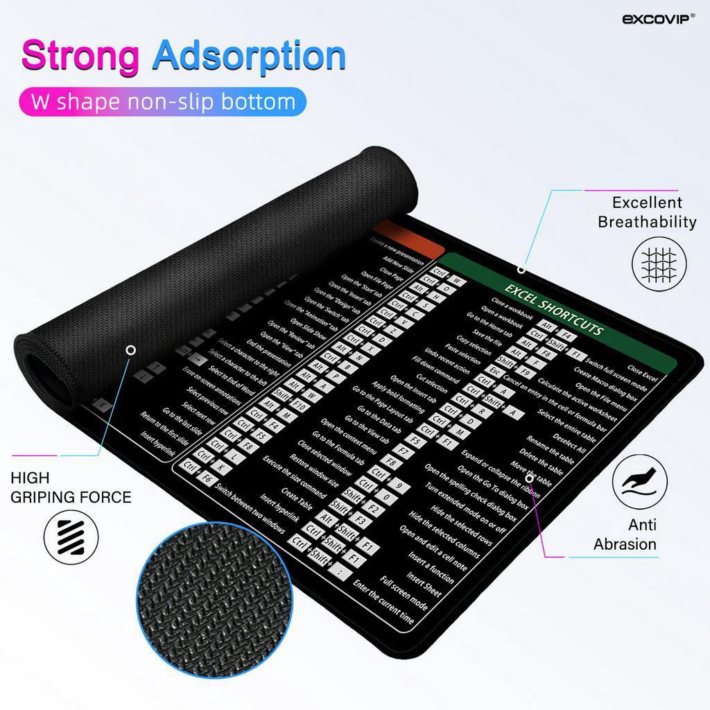 Excovip Mouse Pad English Shortcut Key English Large Size Soft Comfortable Precision Seaming Large Pad Wear-Resistant Dirt-Resistant Anti-Slip Printing Clear Improve Efficiency Laptop Computer Office Accessories Natural Environmentally Friendly Rubber Wo