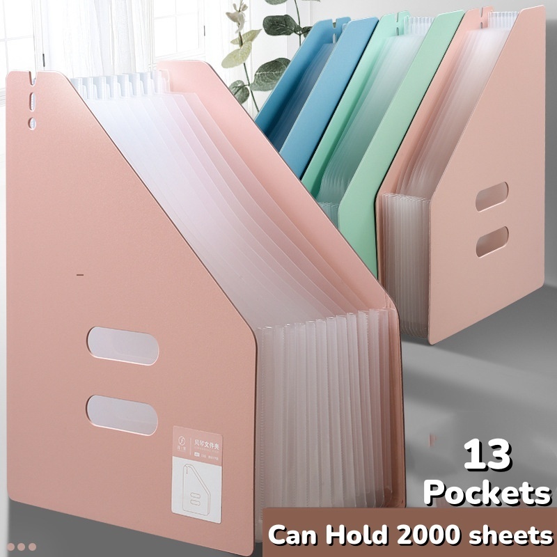 A4 Size Expanding File Folder 13 Pockets Document Organiser with Free Sticker Plastic Envelope