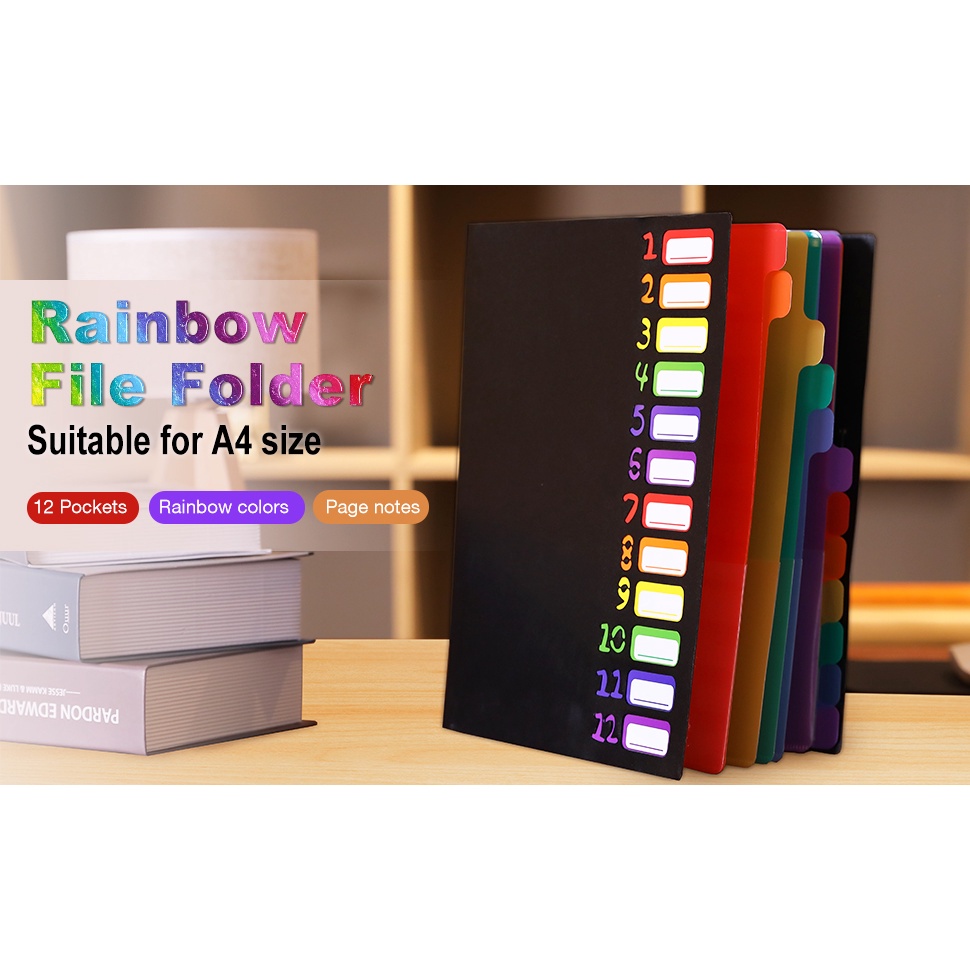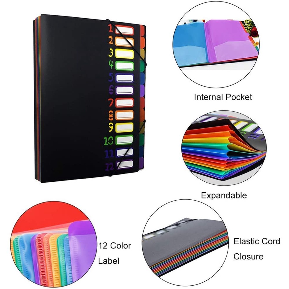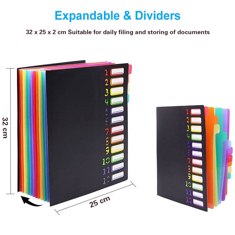 Expanding File Organizer 12 Pockets Accordion Folders A4 Letter Size Hold 120 Sheets Office Supplies
