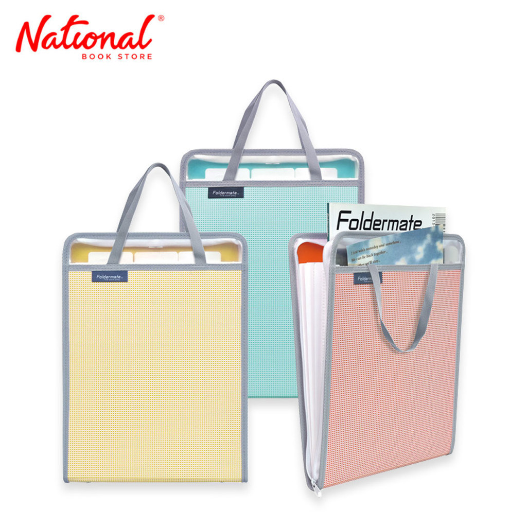 Expanding File with Handle A4 Yellow 3 Pockets with Tab Vertical Colortify Zipper Lock