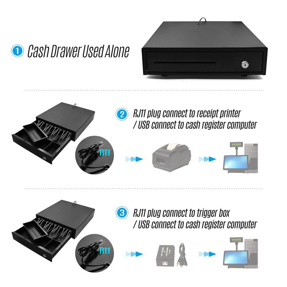 Expose Cash Box Cash Drawer Box Key Lock With 5 Bill 5 Coin Tray Money Box Cashier Machine Safe Box