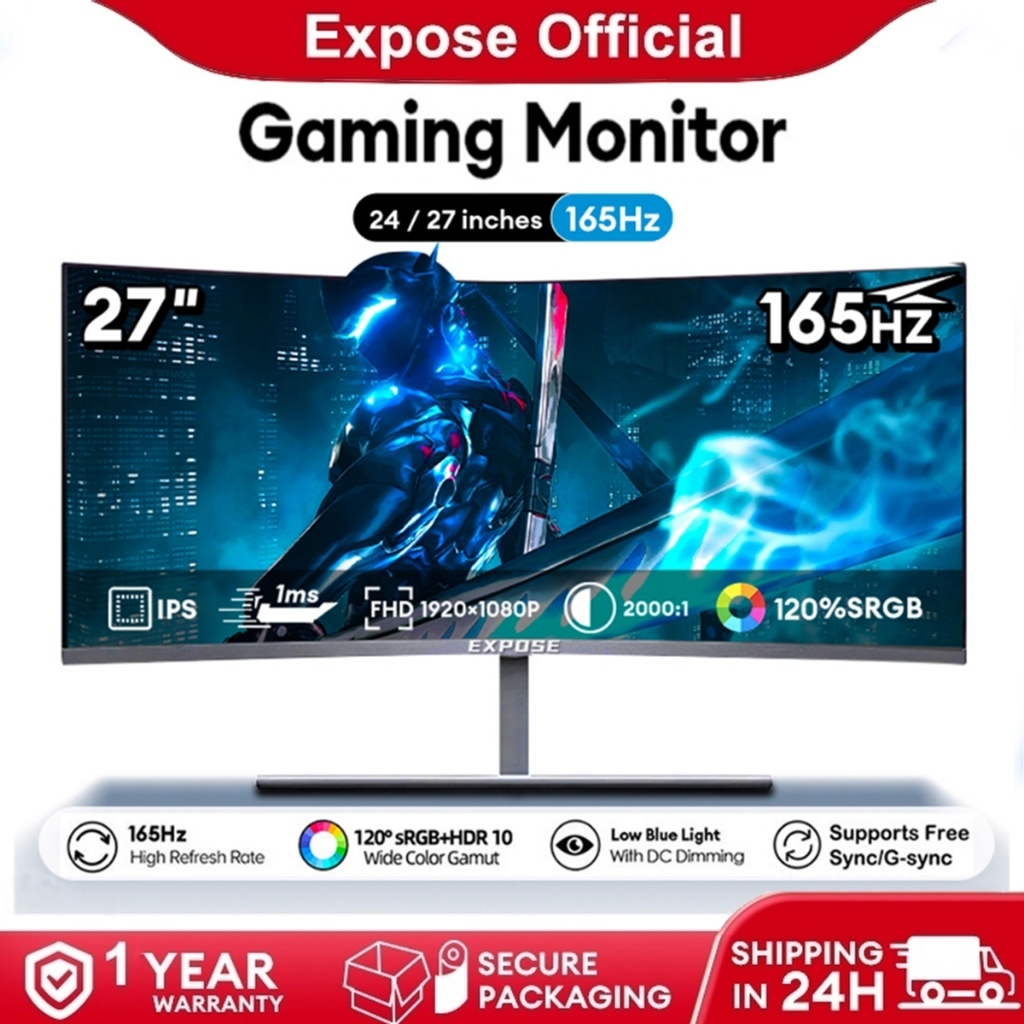 Expose Monitor 27 Inch curved Pc Gaming Monitor Desktop computer 24 inch 75/165Hz IPS Monitor