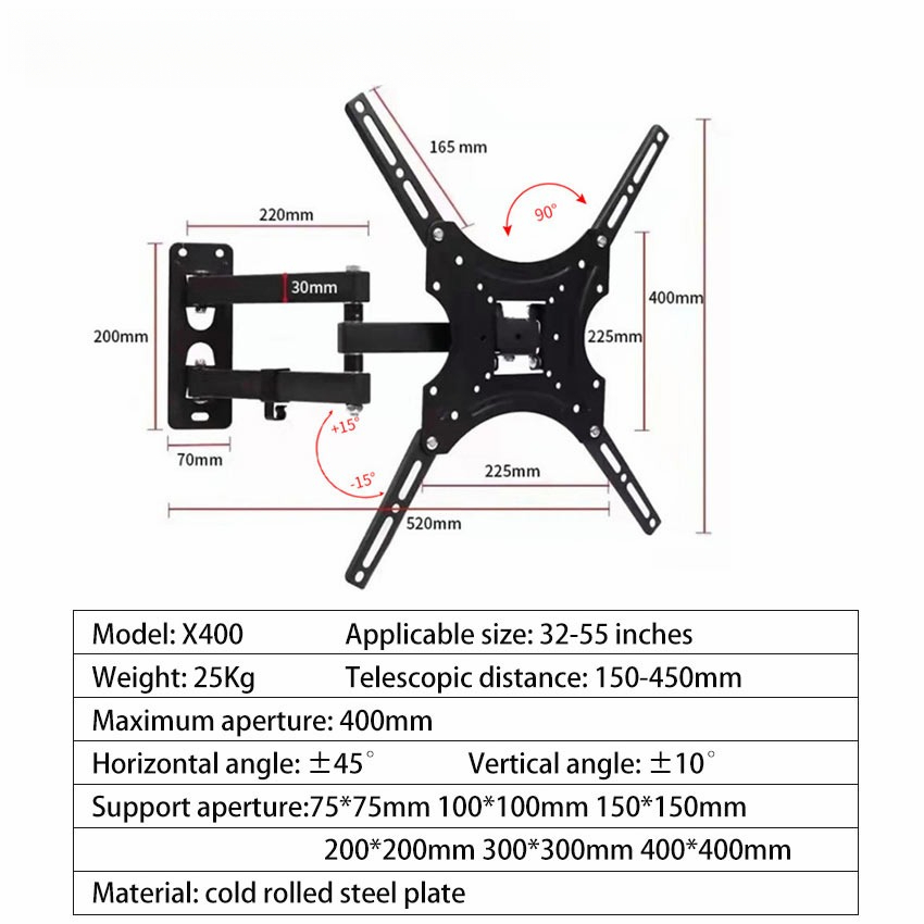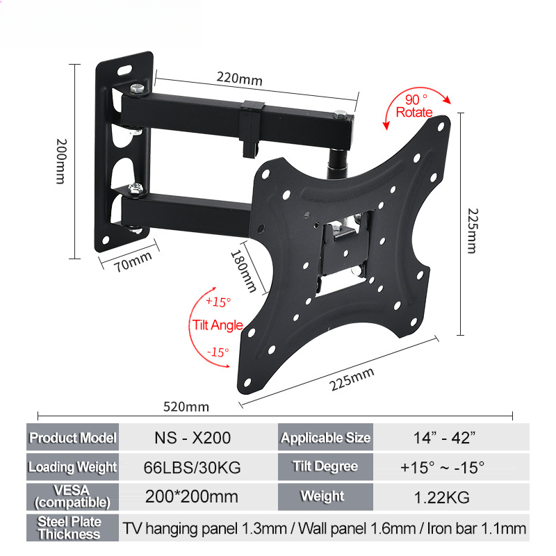 Heavy Duty 6-Arm TV Wall Mount 32–70" Swivel Tilt LCD/LED Monitor Bracket
