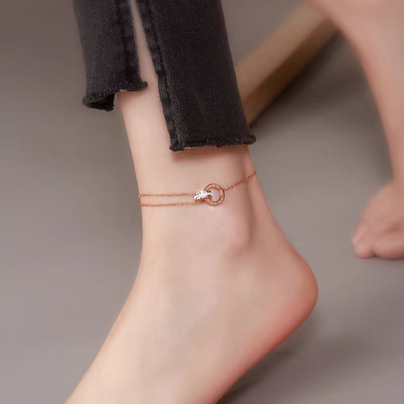 Exquisite, compact, versatile ankle chain, simple and niche beach ankle chain jewelry, titanium steel non fading ankle ring
