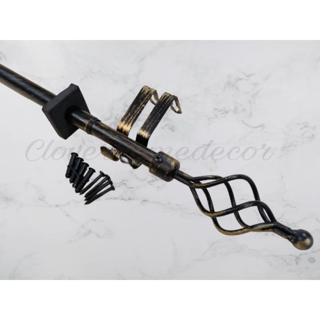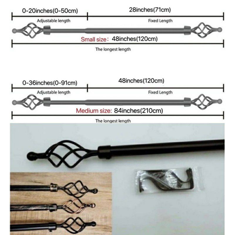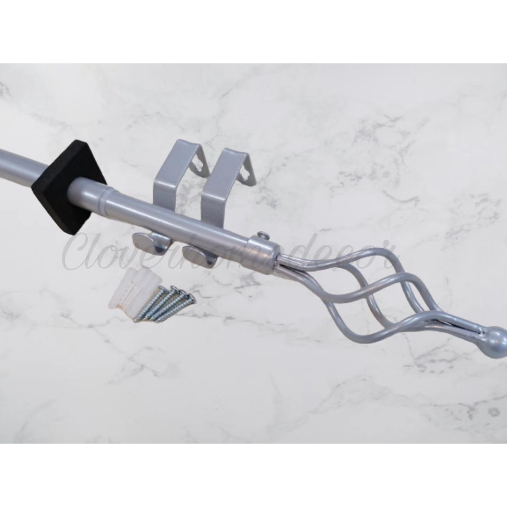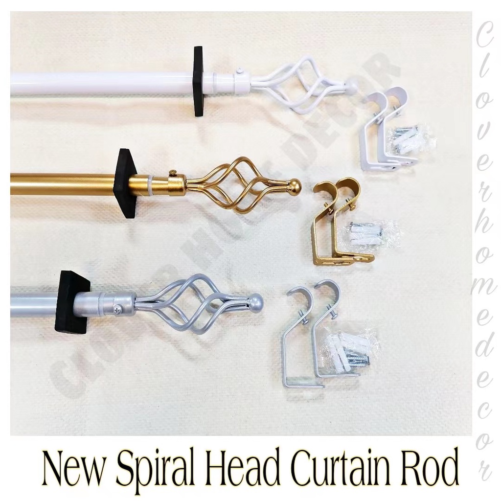 Extendable Metal Spiral Curtain Rod Set with Complete Accessories,Bracket Screws & Tox Thick 3/4"