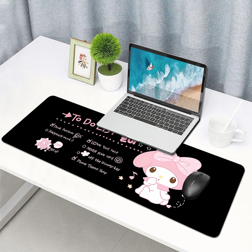 Extended Gaming Mouse Pad, Non-Slip Rubber Base Mousepad with Stitched Edge Keyboard Pads Melody Black Desk Mats