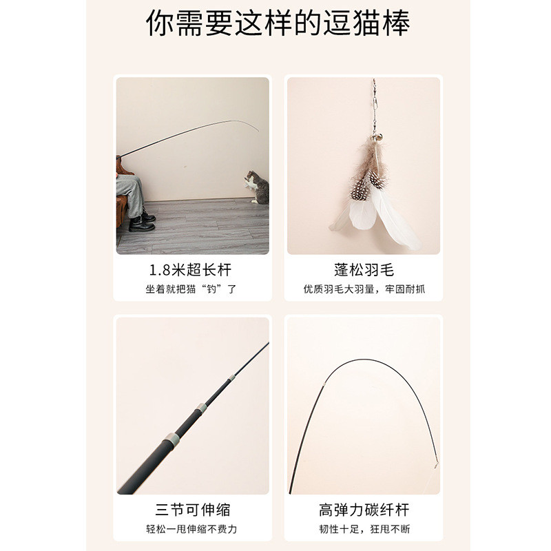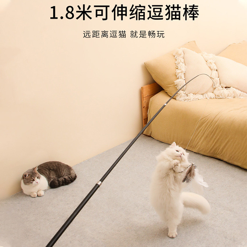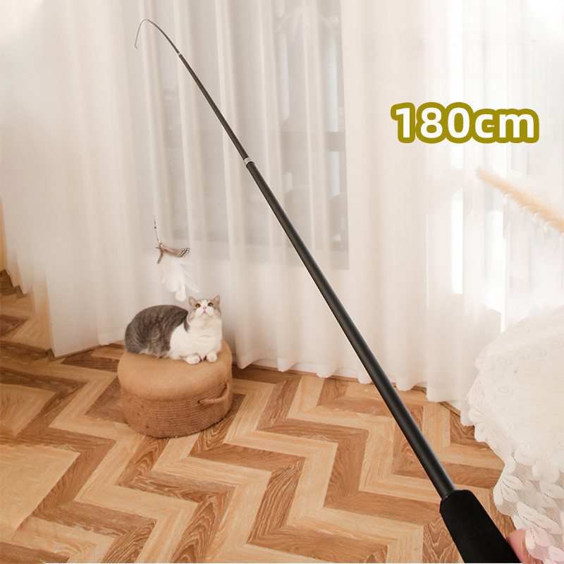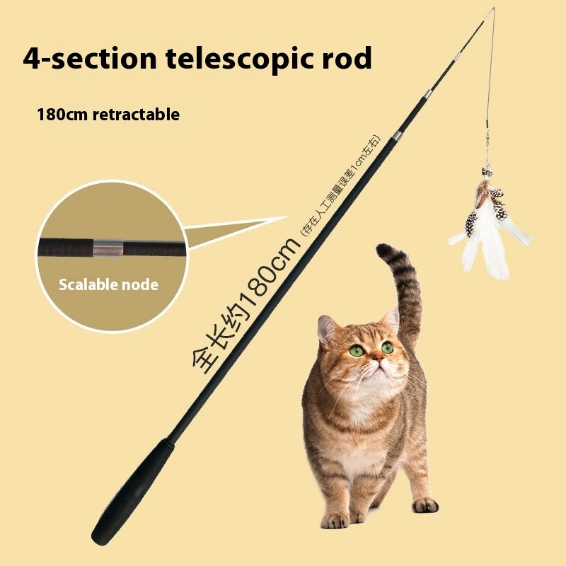 Extended four section telescopic cat teaser stick 1.8m long fishing rod, scratch resistant feather cat toy, pet supplies wholesale