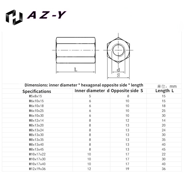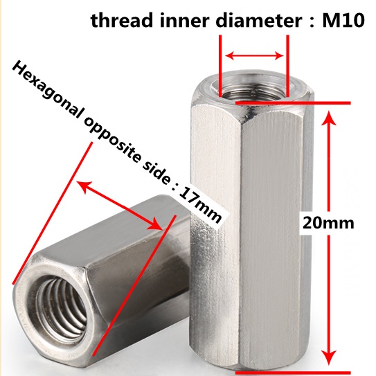 Extended hexagon nut threaded joint internal thread rod threaded joint nut 304 stainless steel m5m6m8m10