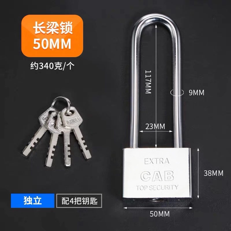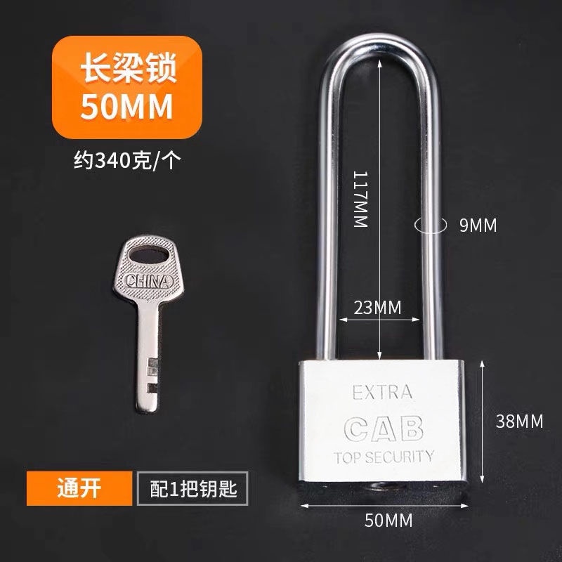 Extended padlock extra long beam long handle long lock head waterproof imitation stainless steel lock household cabinet handle plug-in lock