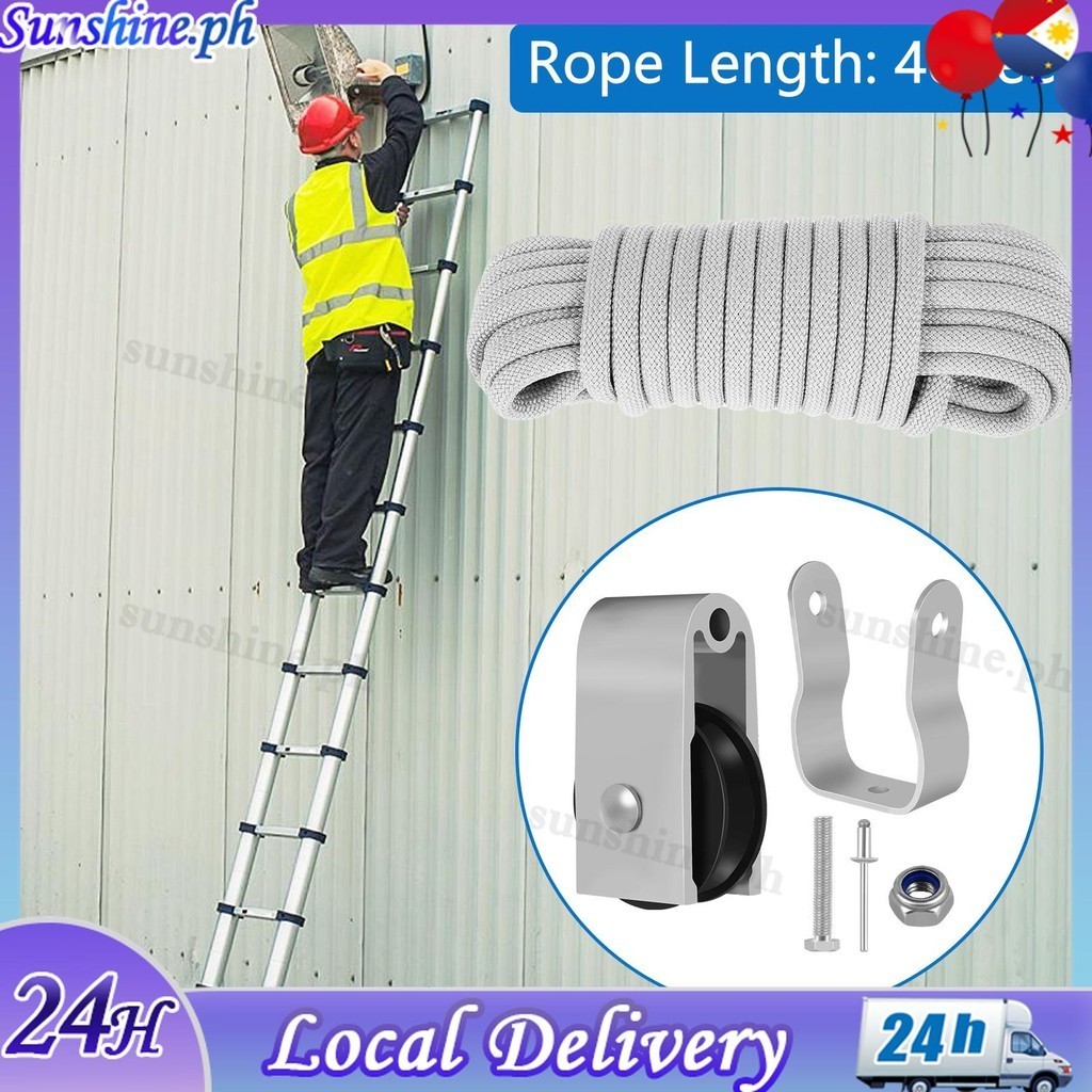 Extension Ladder Pulley Kit 40Ft Telescopic Ladder Rope and Pulley Kit AC30-2 Extension Ladder Rope Replacement for Pulley SHOPQJC8025