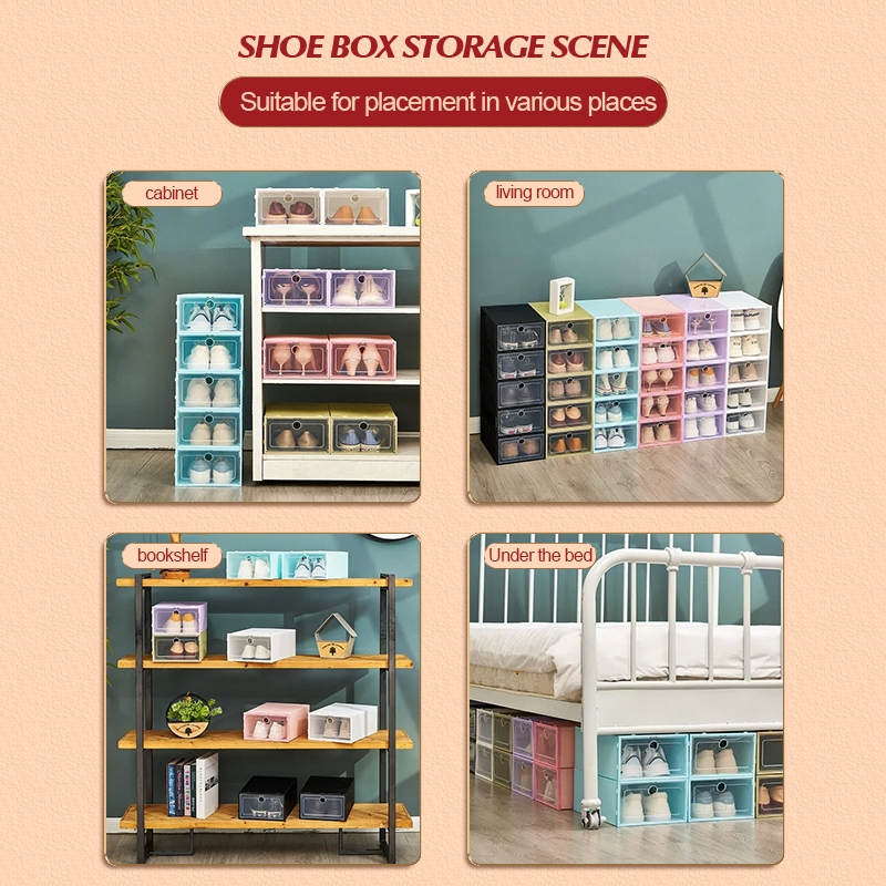 Extra Large Hard Plastic Shoe Box Organizer Storage Shoe Rack Transparent Foldable with Cover