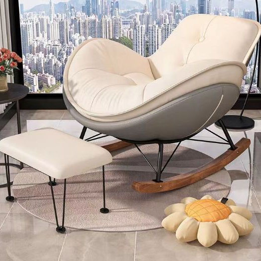 Extra Large Rocking Chair Penguin Reclining Chair Nordic Lazy Sofa Home Luxury Balcony Living Room Leisure Eggshell Cha