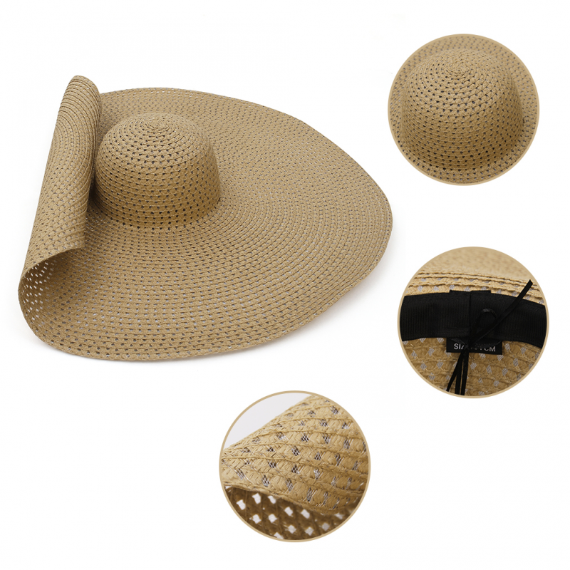 Extra-Large Straw Woven Sun Hat for Beach and Seaside Vacation Sunscreen Straw Hat (Hollow Style)