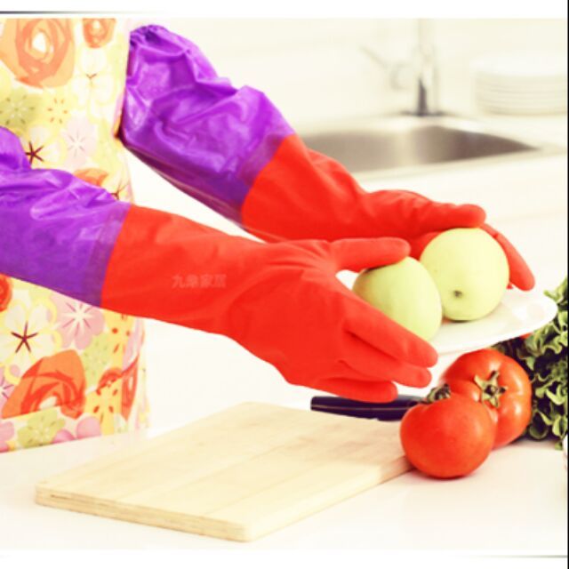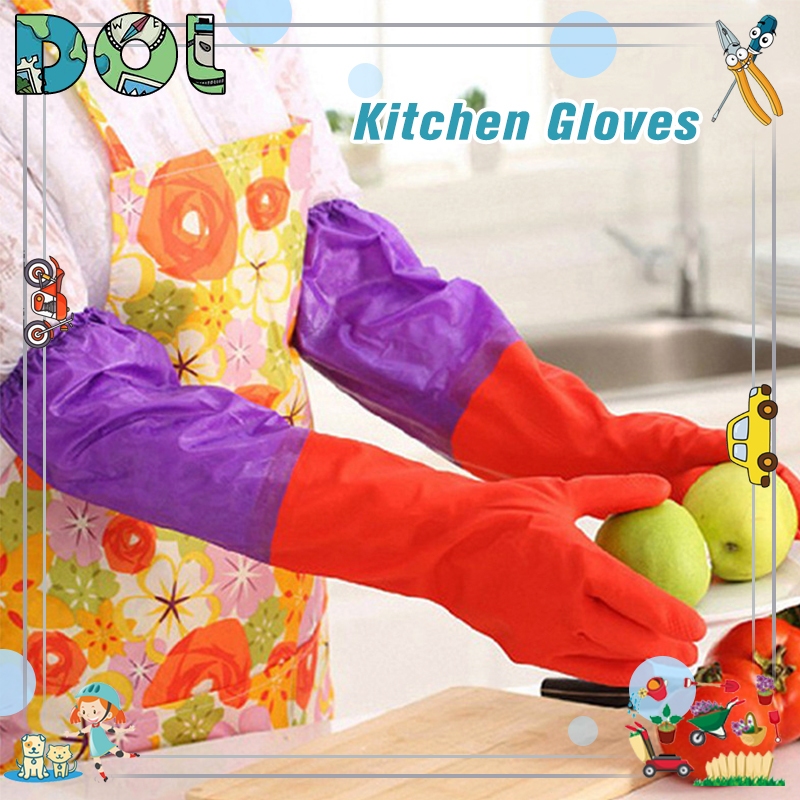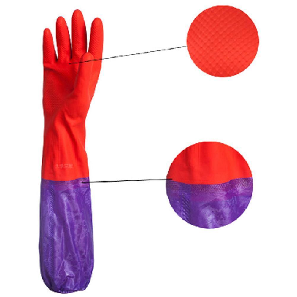 Extra-Long Dishwashing Gloves Cashmere Lining With Elasticized Opening Waterproof And Non-Slip Warmt