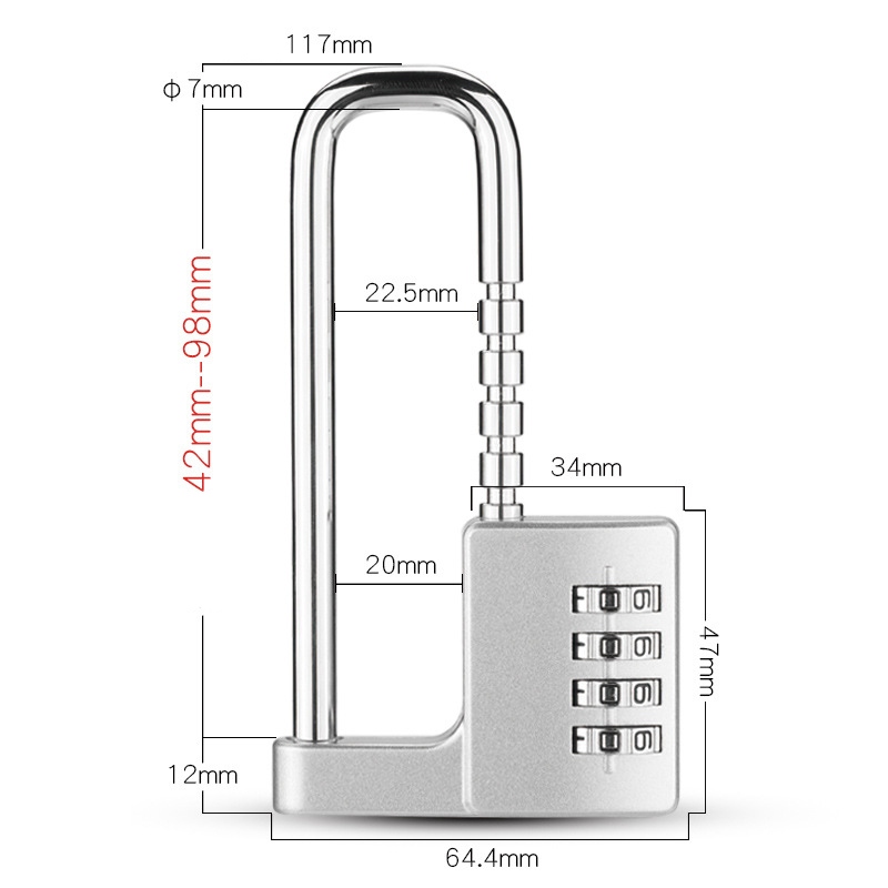 Extra Long Padlock Digit Combination Padlock Adjustable Extended U-Shaped Door Waterproof Lock