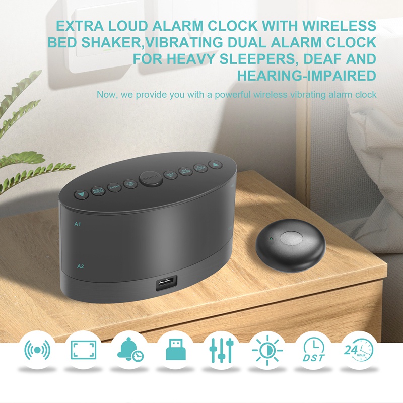 Extra Loud Alarm Clock with Wireless Bed Shaker,Vibrating Dual Alarm Clock for Heavy Sleepers, Deaf and Hearing-Impaired hsihiipaiwia