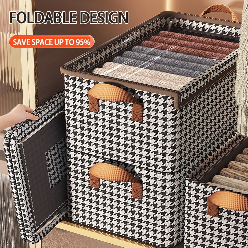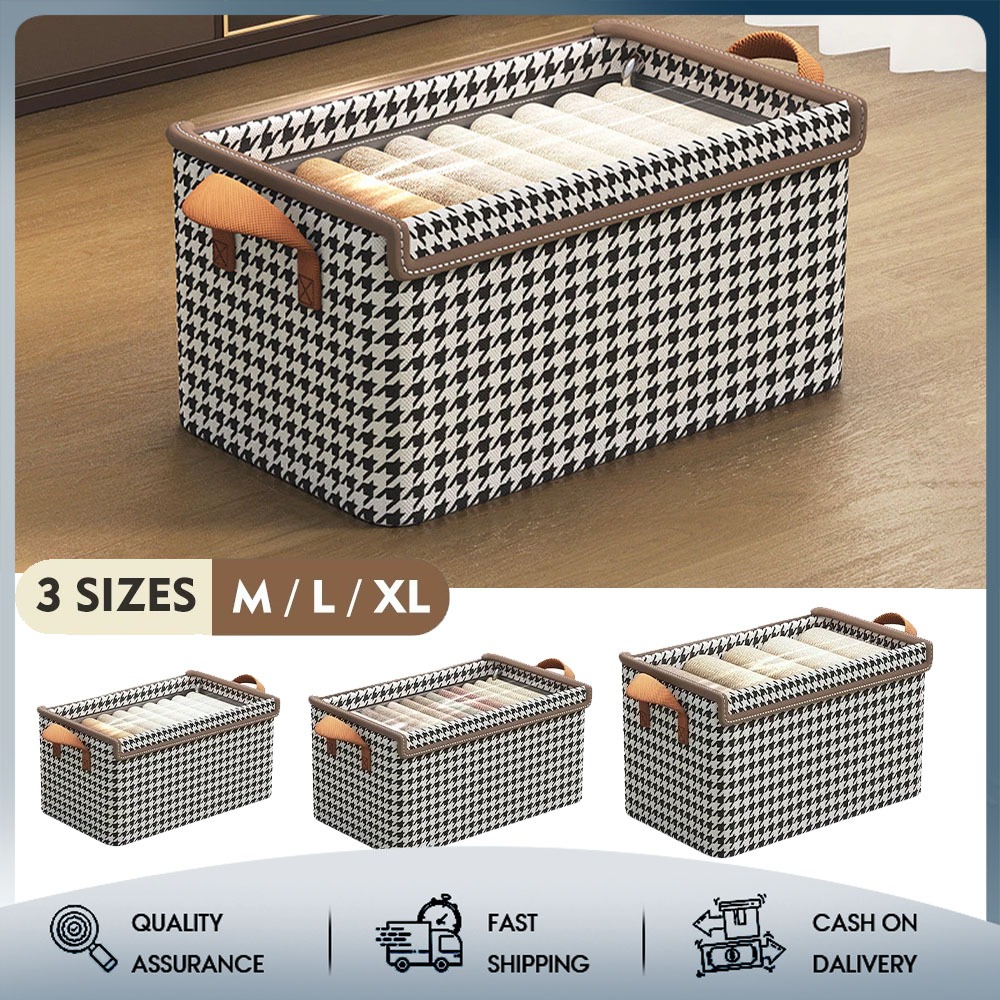 Extra large clothing storage box with lid foldable waterproof Clothes Tshirt storage box steel frame