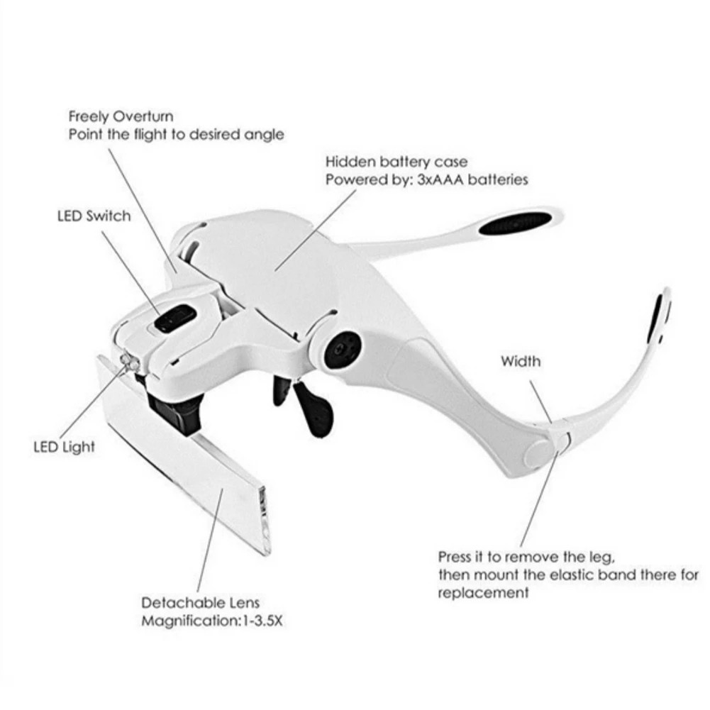 Eyelash Extension 5 Lens Adjustable Headband Magnifying Glass Magnifier With LED Light Lamp Magnifying Glasses For False Lashes