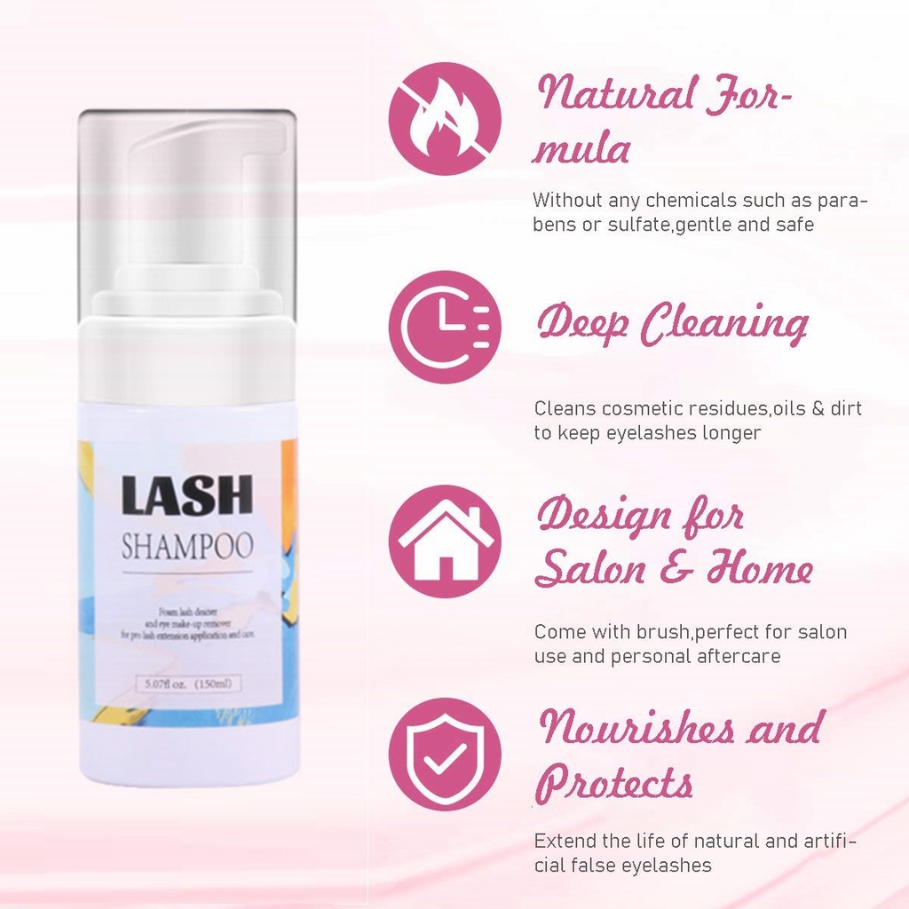 Eyelash Extension Cleanser Eyelid Foaming Cleanser Lash Foam Shampoo for Extensions, Oil, Paraben & Sulfate Free,100% Safe for Natural Lashes, Non-Irritating