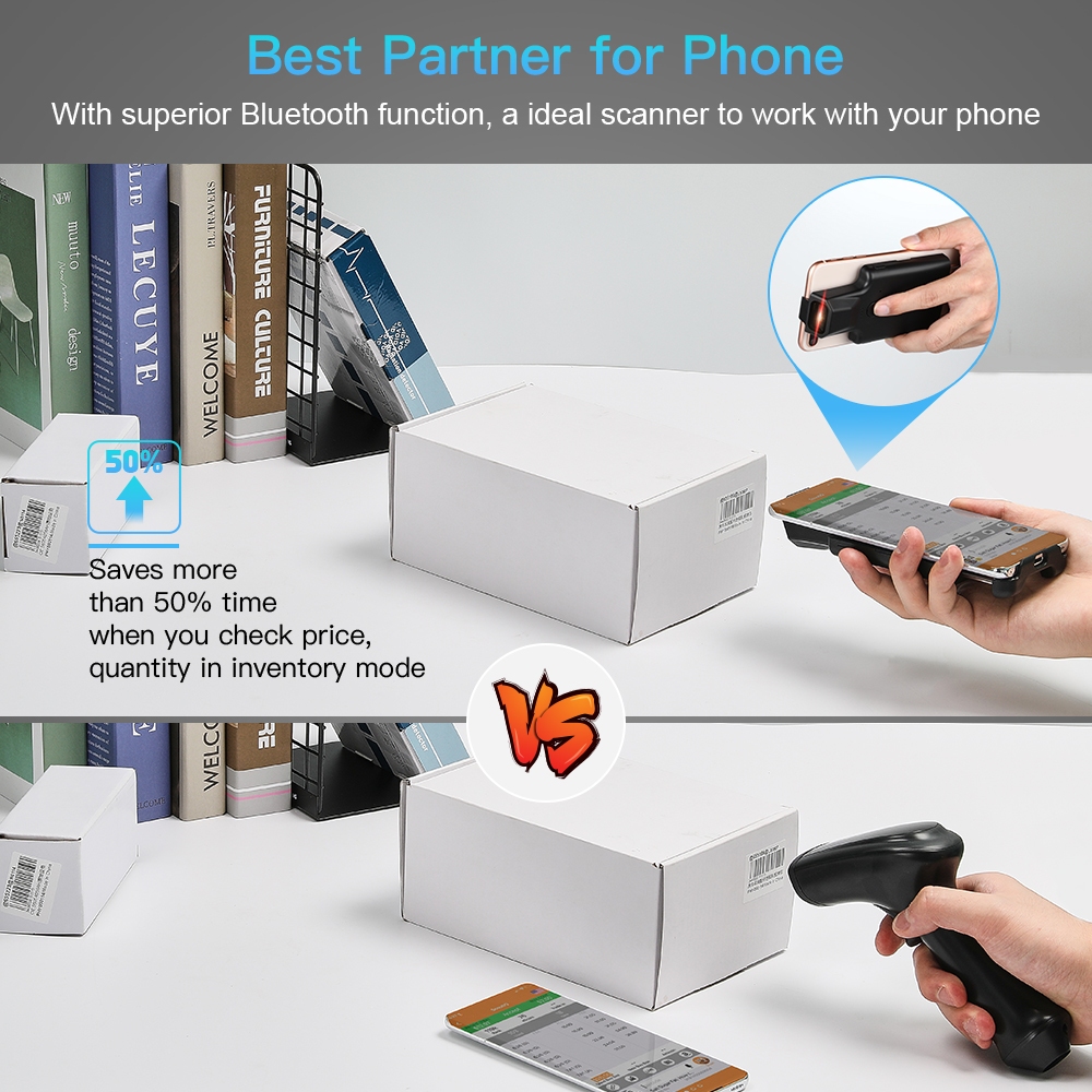 Eyoyo 2D Wireless Barcode Scanner Phone Back Clip Via Bluetooth Bar Code QR Scan Reader Image Scan PDF417 Data Matrix Code Maxicode Scanning Compatible with Windows, Mac OS, Linux,