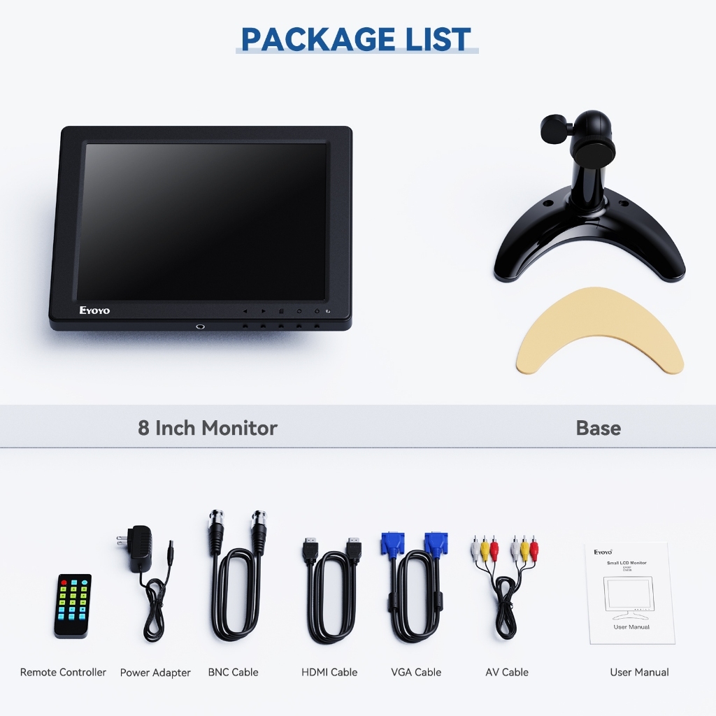 Eyoyo 8 Inch Small Monitor, 1024x768 4:3 IPS HDMI Monitor Support HDMI/VGA/AV/BNC Input with Remote Control & Speakers, Security Monitor for Computer Raspberry Pi CCTV Camera Car