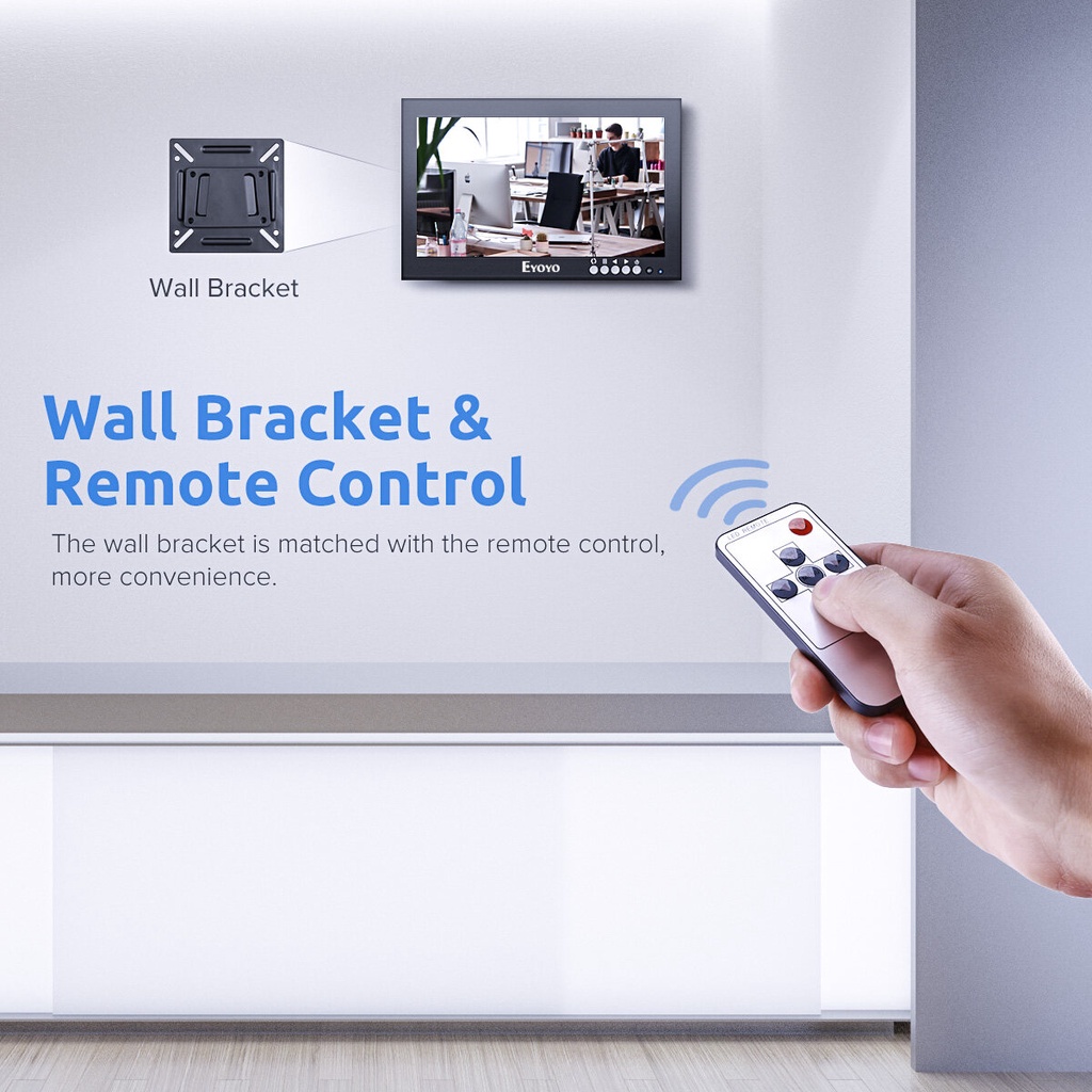 Eyoyo 8 inch Small HDMI LCD Monitor, Portable 1280x720 16:9 IPS Metal Housing Screen Support HDMI/VGA/AV/BNC Input with Wall Bracket & Remote for PC, CCTV Camera, Raspberry pi