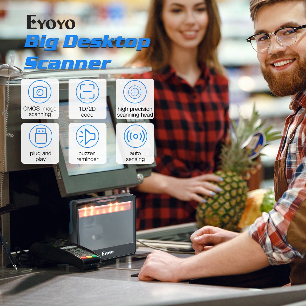 Eyoyo Big Desktop Barcode Scanner, Omnidirectional Hands-Free Wired USB Barcode Reader, 1D QR 2D Screen Barcodes Scanning Platform Scanner Well Work for Supermarket Store