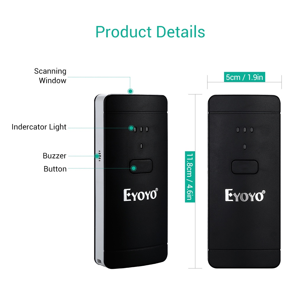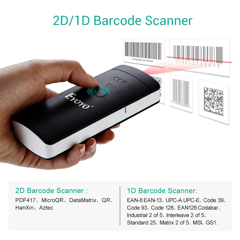Eyoyo EY-002S 1D/2D BarCode Reader, Bar code Scanner Bluetooth Portable work up to 9h Work for Warehouse