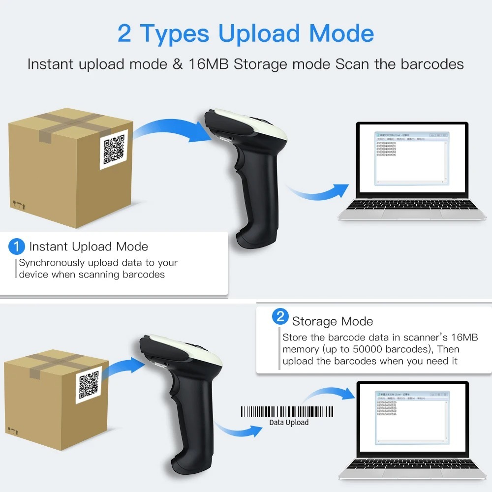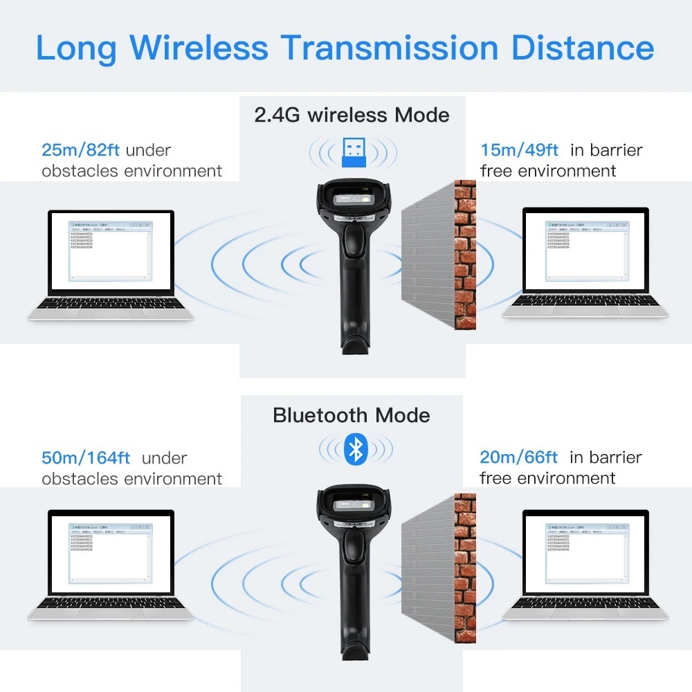 Eyoyo EY-011 Dual Mode Wired&Wireless Bluetooth Handheld Barcode Scanner With Adjustable Stand.Auto-sensing Scanning 1D/2D Codes