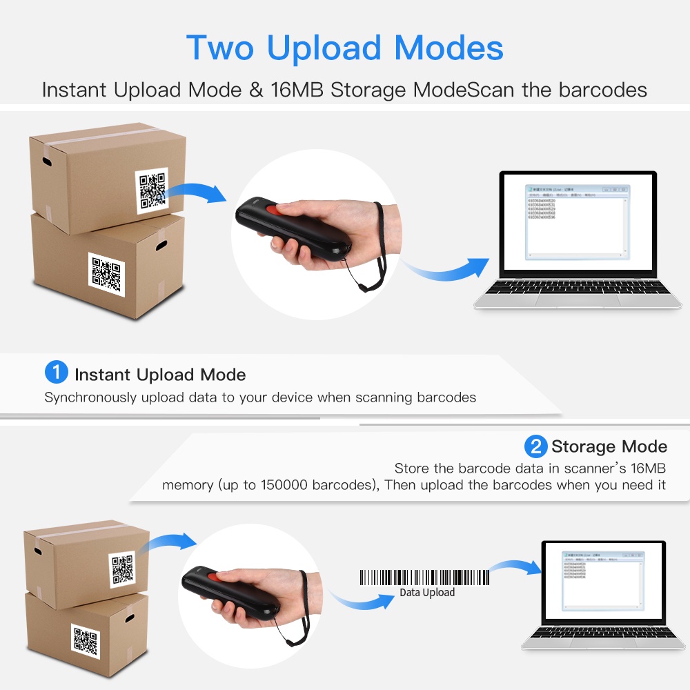 Eyoyo Mini 2D Wireless Barcode Scanner Via Bluetooth 2.4GHz Wireless USB Wired Connection CCD Bar Code QR Scan Reader For iOS/Macos,Linux,Android,MacOS Windows Tablet
