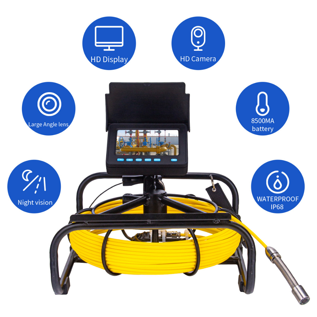 Eyoyo Pipeline Endoscope Inspection Camera 50M Underwater Industrial Pipe Sewer Drain Wall Video Plumbing System with LCD Monitor 720p High-performance Camera DVR16GB