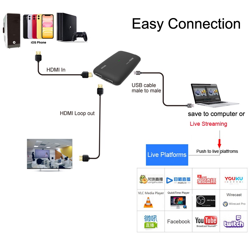 Ezcap321 4K 30hz 1080P 60FPS 120fps Full HD HDMI To USB 3.0 Video Capture Card for XBOX PS4 Switch Game Camera Etc. Record Live Streaming Line In HDMI Loop Out