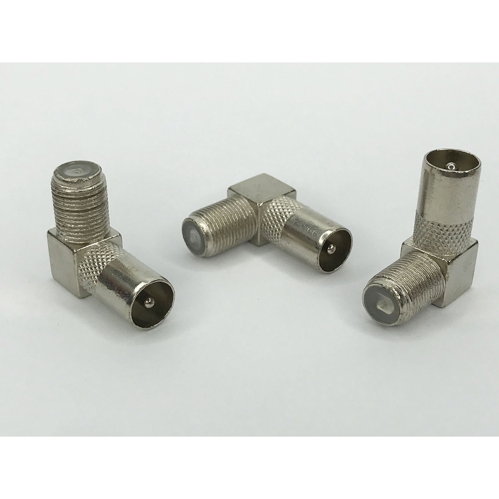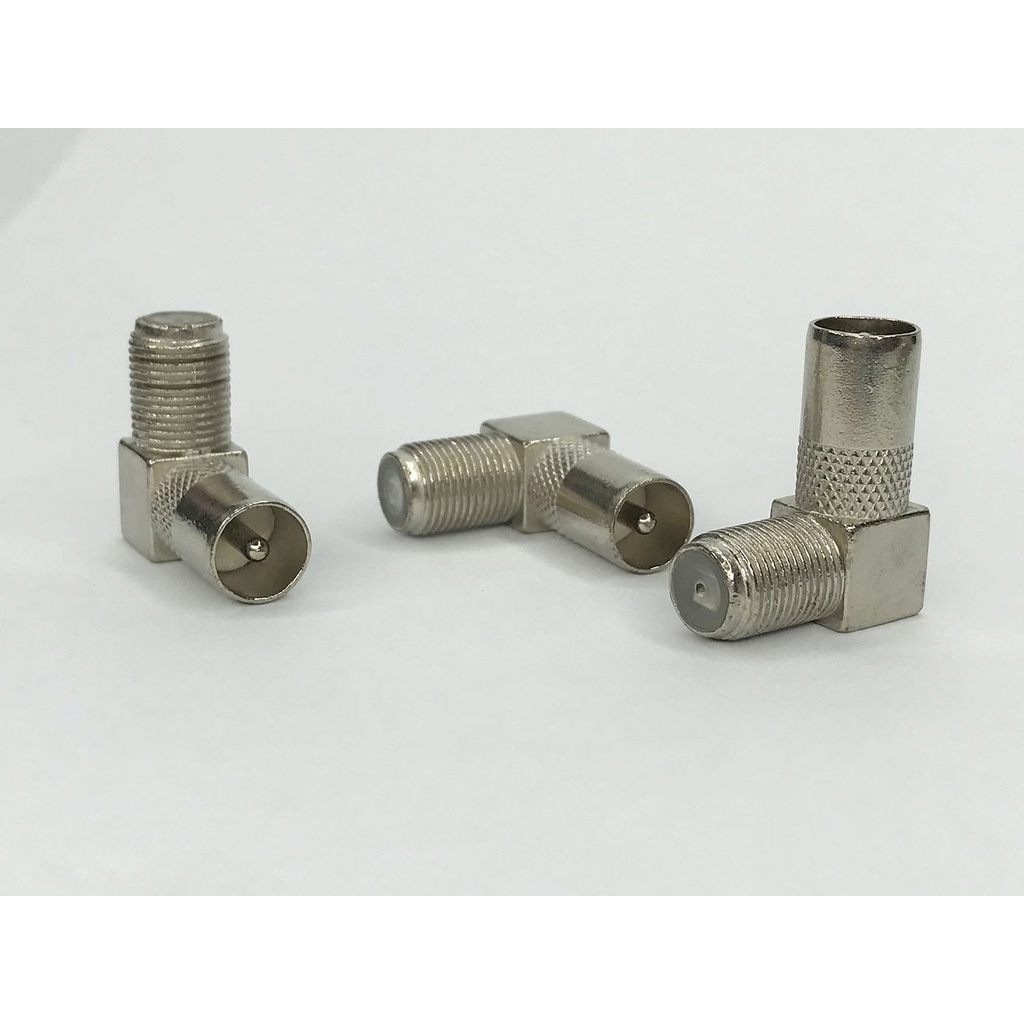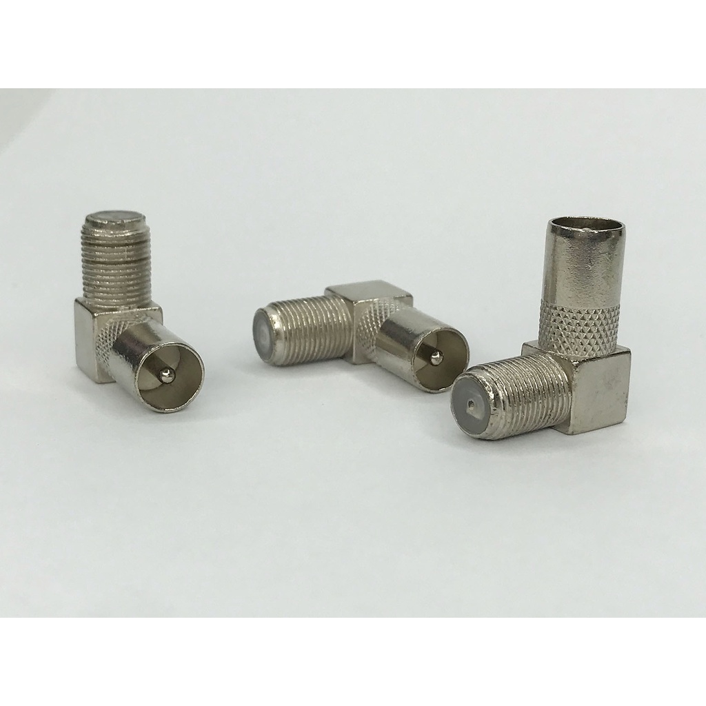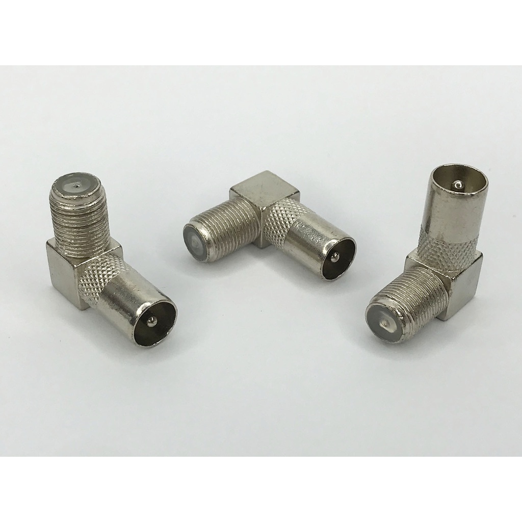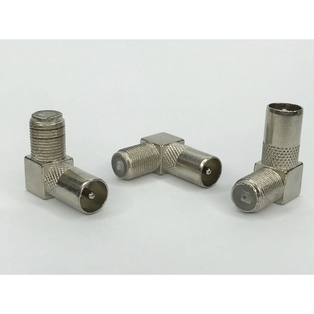 F Type Connector, FEMALE to MALE TV PAL COAX ANTENNA JACK RF AERIAL ADAPTER, 90 DEGREE RIGHT ANGLE