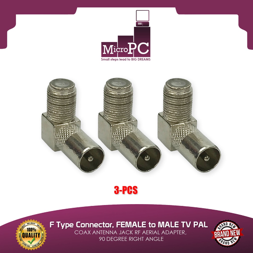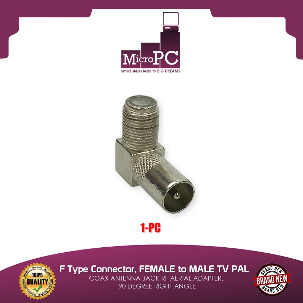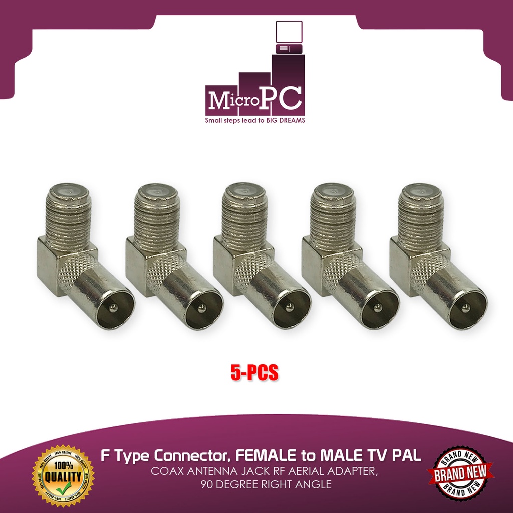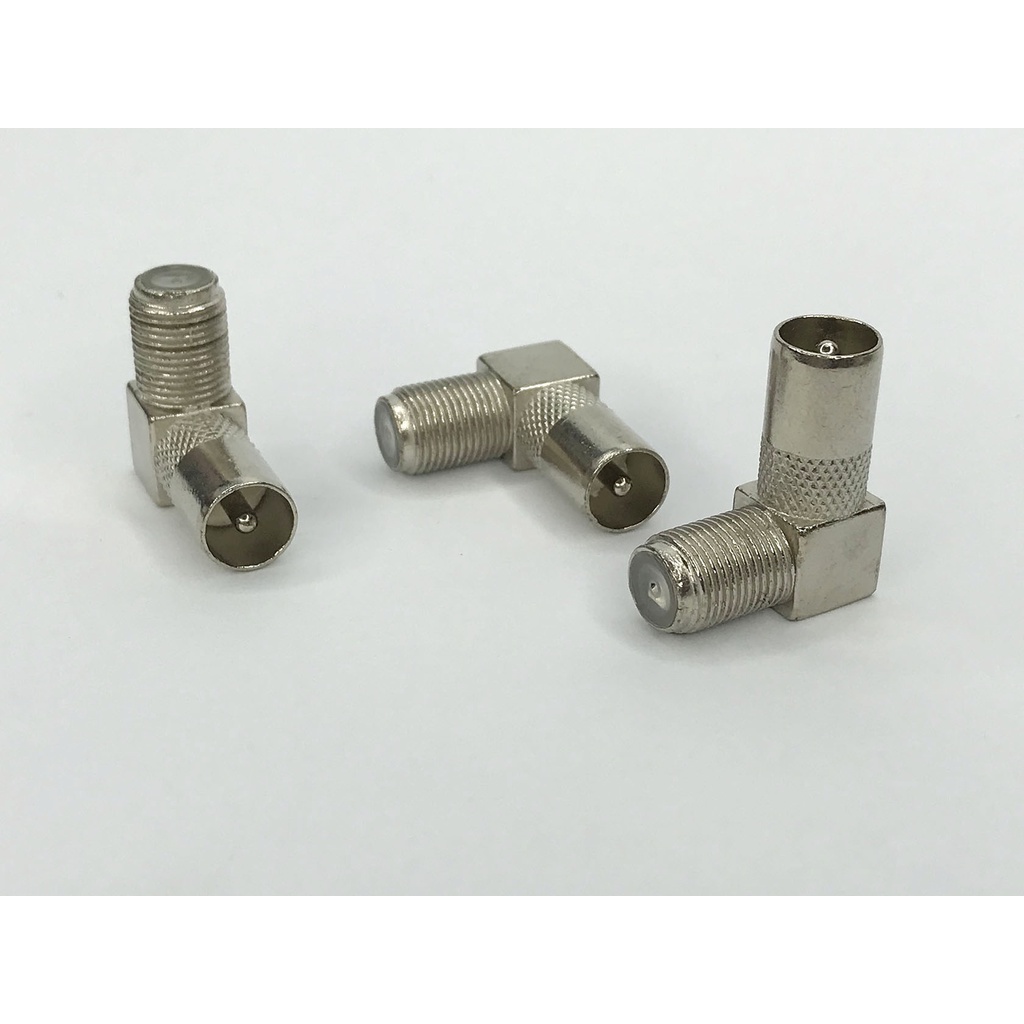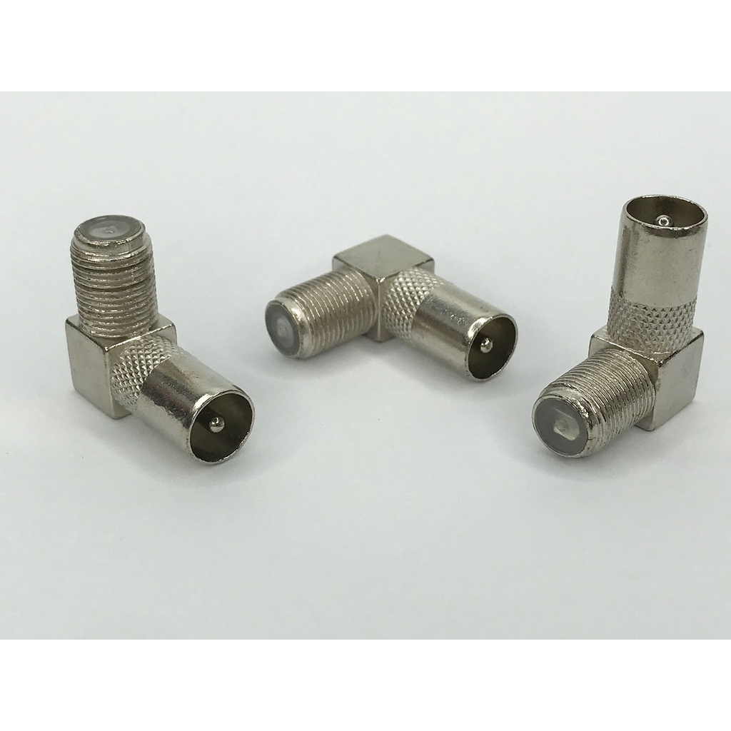 F Type Connector, FEMALE to MALE TV PAL COAX ANTENNA JACK RF AERIAL ADAPTER, 90 DEGREE RIGHT ANGLE