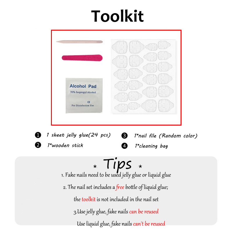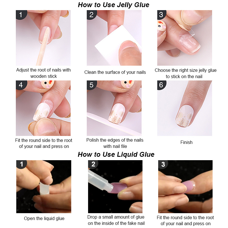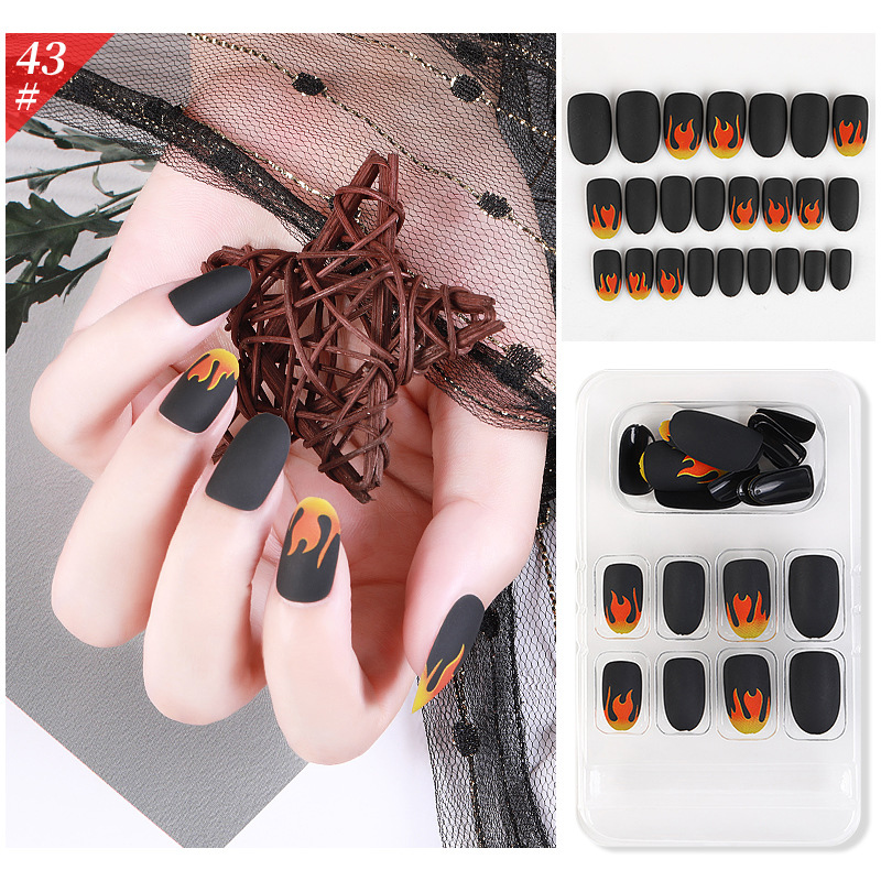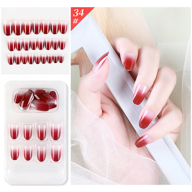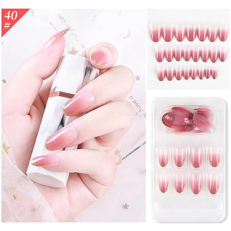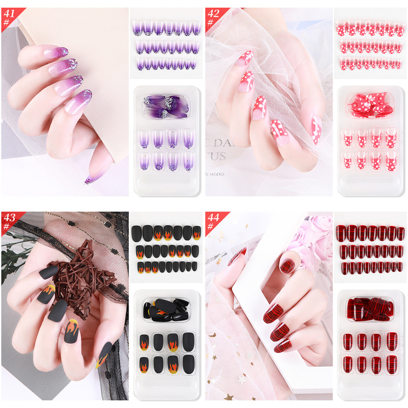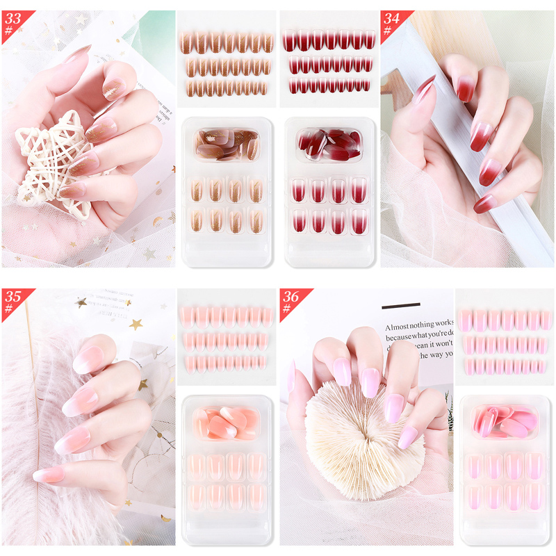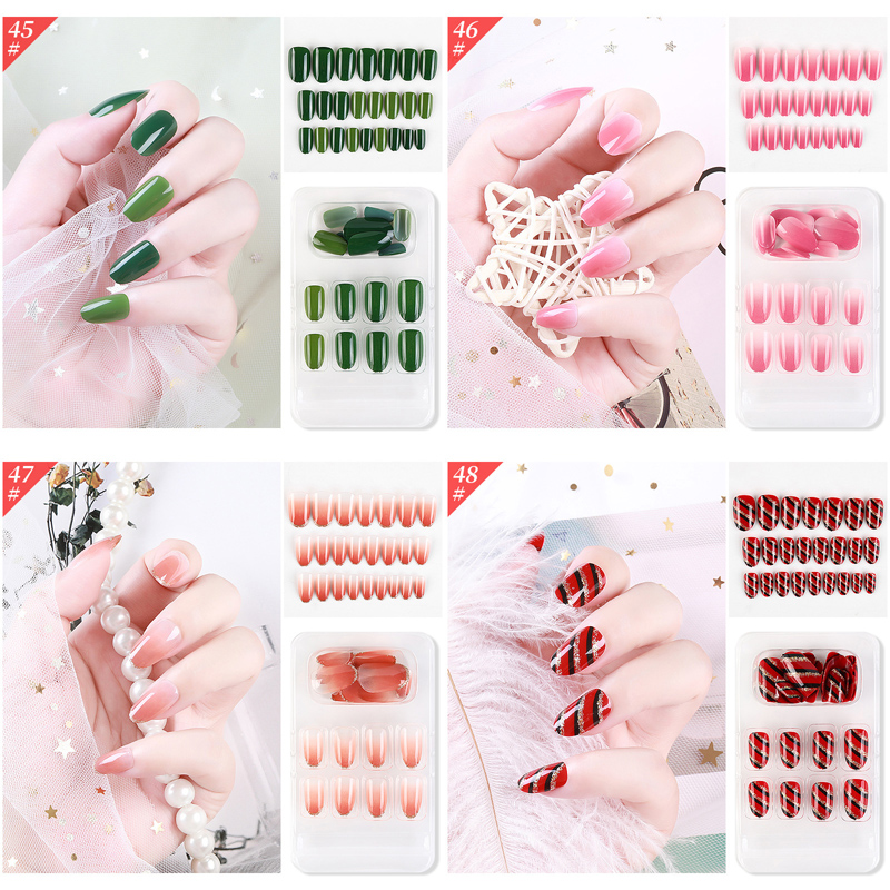 F033~F048 24 Pcs/box Full Cover Long Fake Nails With Free Liquid Glue Nail Art Tips False Nails