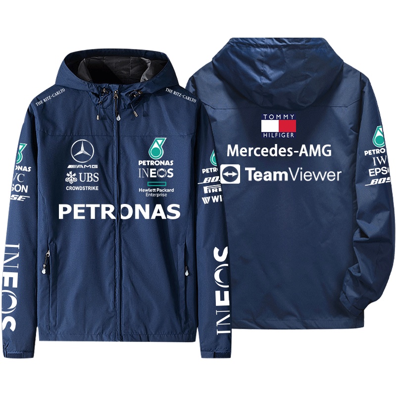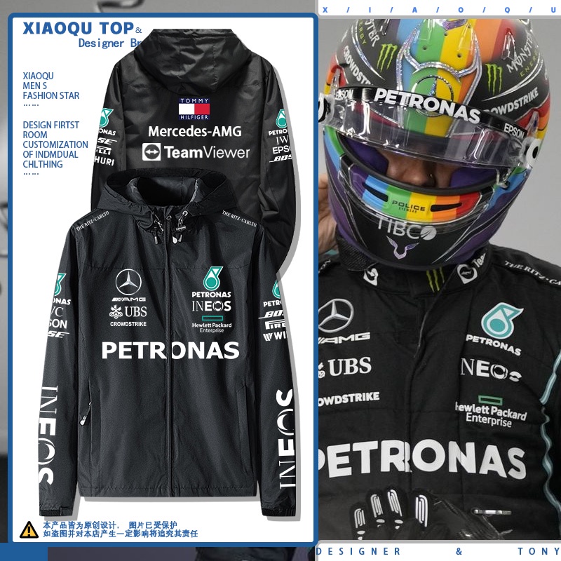 F1 Mercedes-AMG Team Racing Suit Lewis Hamilton Hooded Jacket Windbreaker Custom Workwear