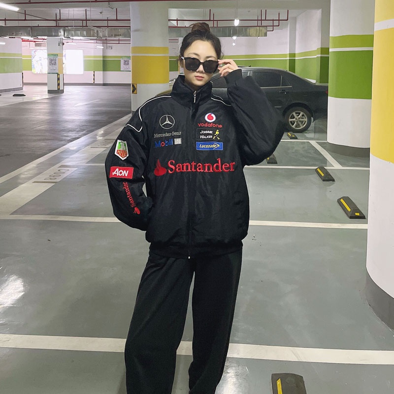 F1 Racing Jersey Mercedes-Benz Fleet Motorcycle Clothing Cycling Jacket Autumn Winter Cotton-Padded Men's Full Embroidered Jack