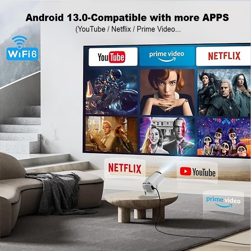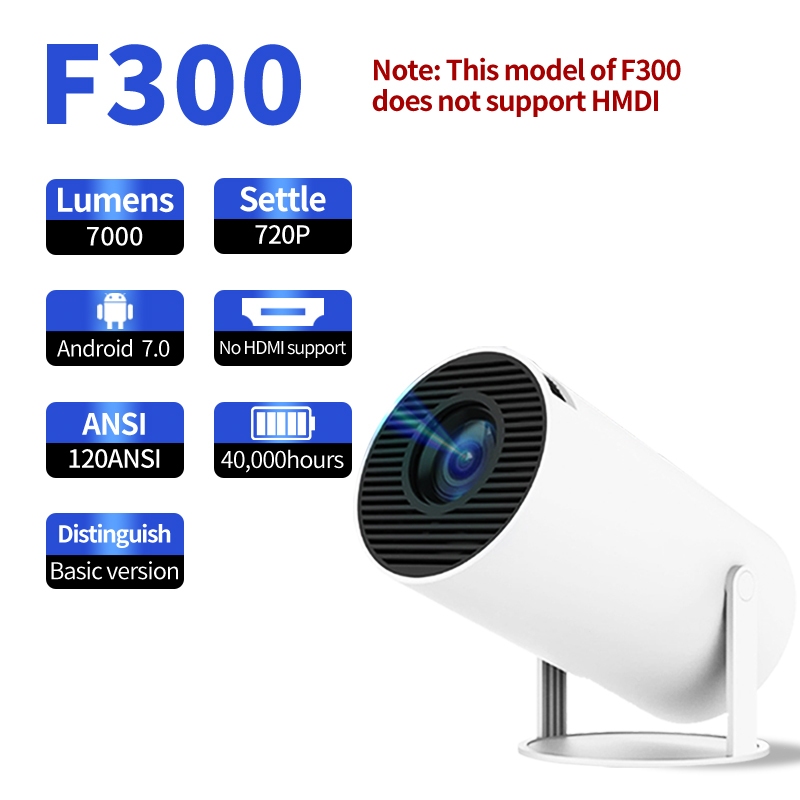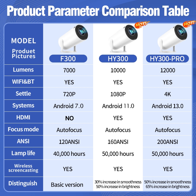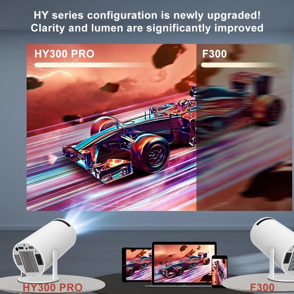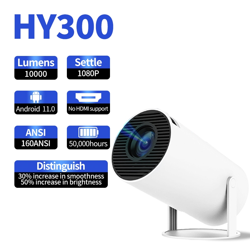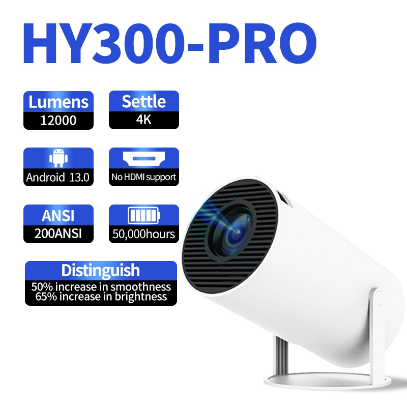 HY300 Smart Projector UHD Portable Mini WiFi Bluetooth Android Connectable to Mobile Phone Bright 4k