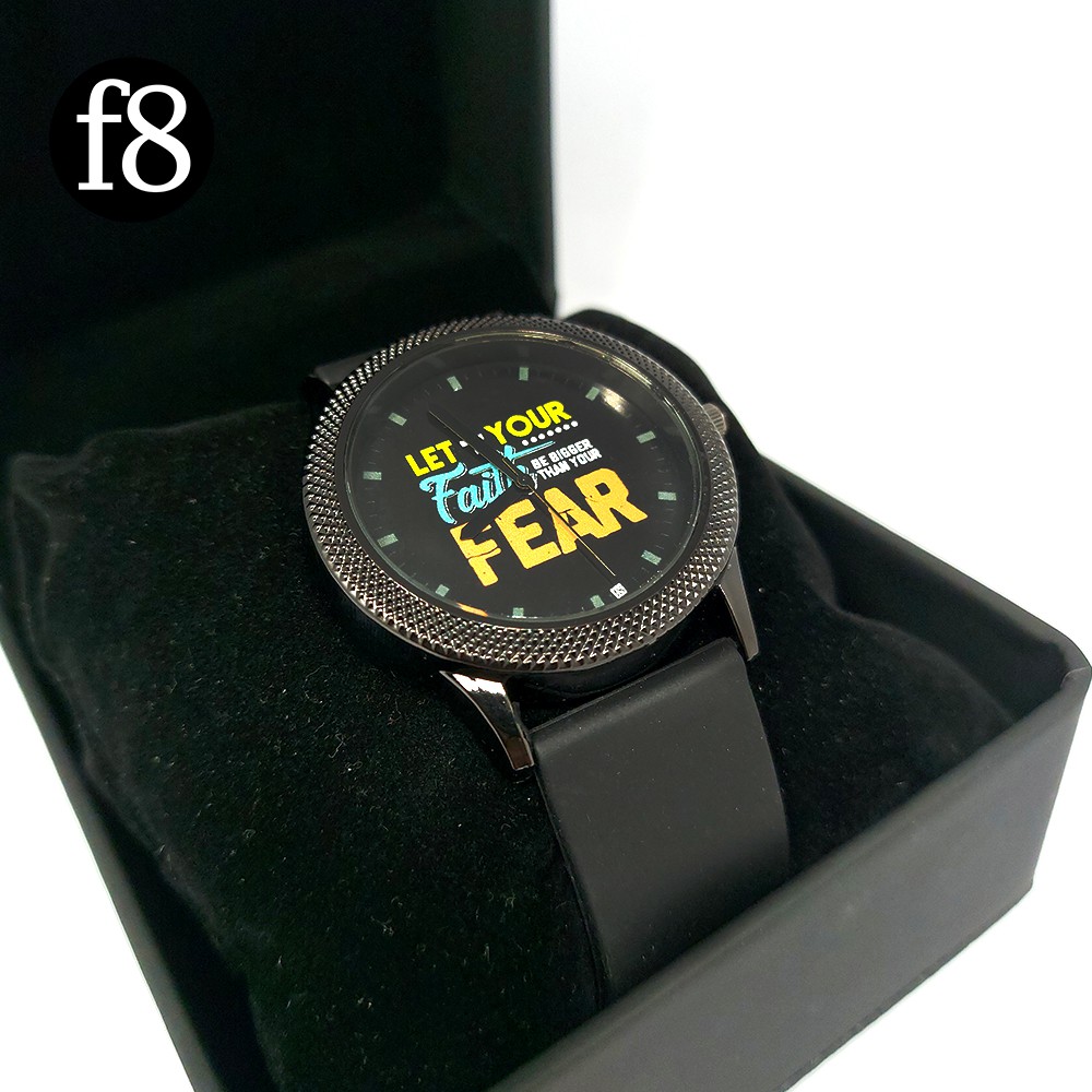 F8WATCH Unisex Gospel Bible Inspirational Life Verse Personal Faith Bigger Than Fear Wrist Watch