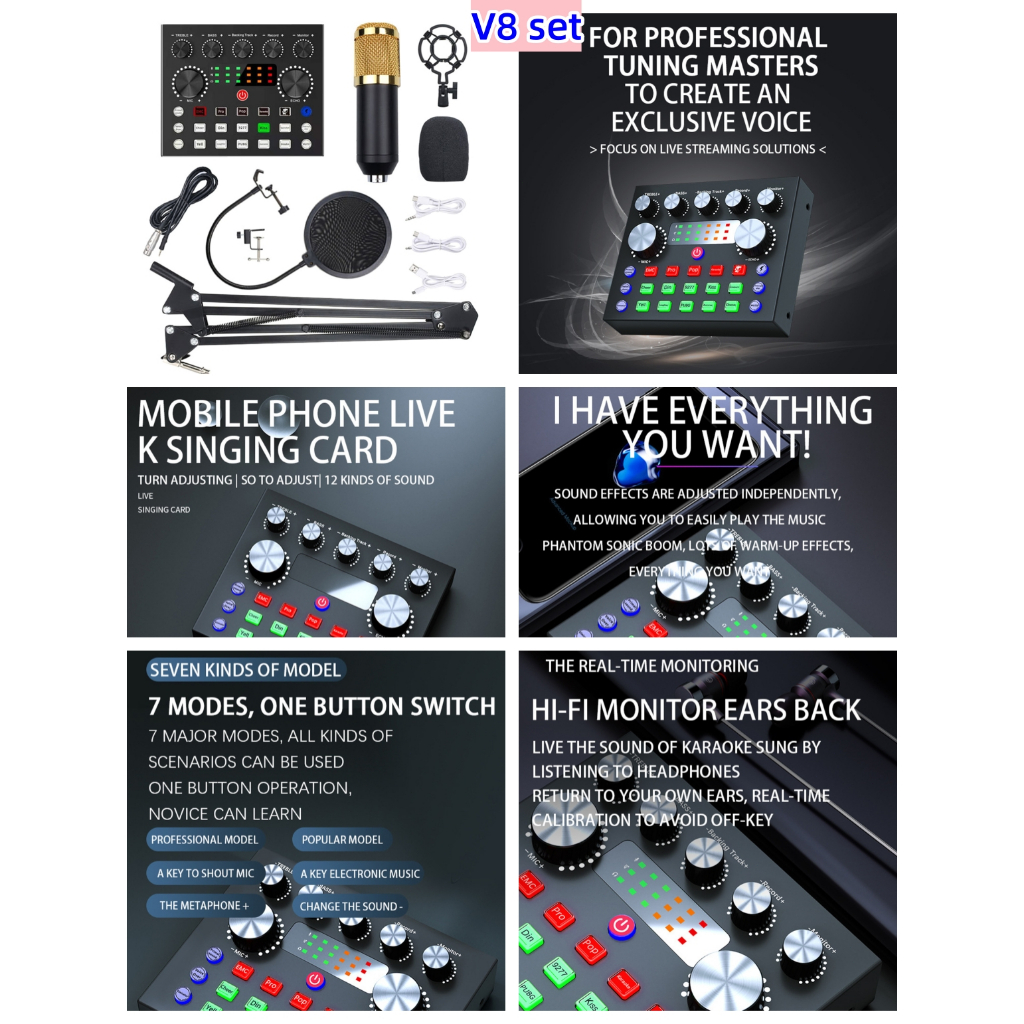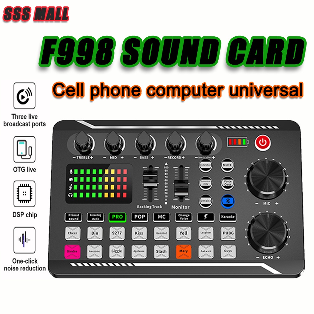 F998 Sound Card Microphone Mixer Kit 16 Sound Effect Audio Recording Sound Mixer for Phone/PC/Laptop
