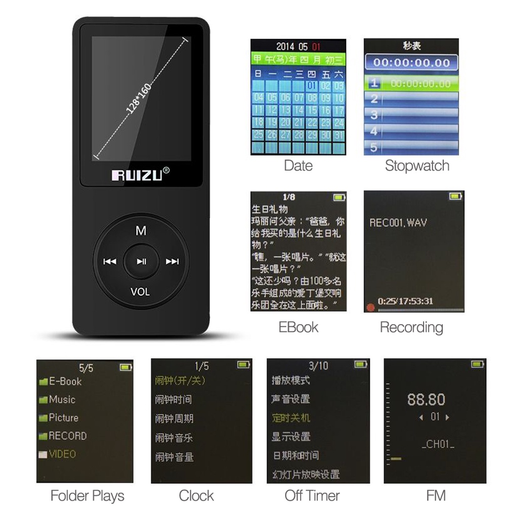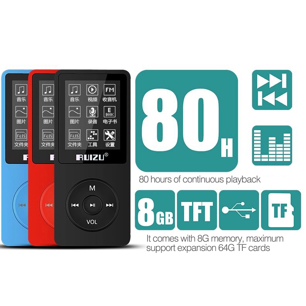 FAAEAL RUIZU X02 MP3 Player 4GB 8GB 16GB Portable Audio Lossless Music Player Walkman With FM Radio Video E-book Voice Recorder Clock Support TF Card