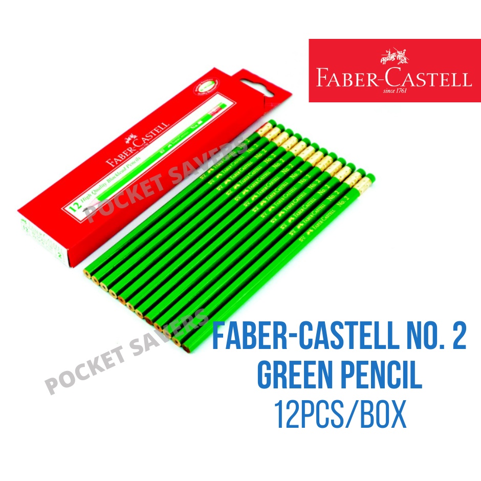 FABER CASTELL No. 2 Green Pencil Box of 12 pcs. (Soft, Drawing Pencils, Easy Sharpening, 2B)
