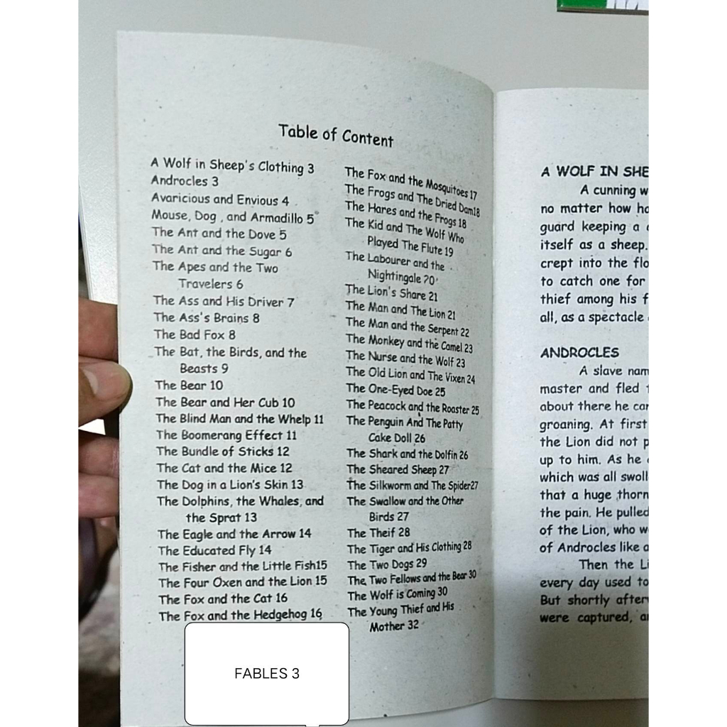 FABLES Educational book, a short story with animals as characters, conveying a moral lesson