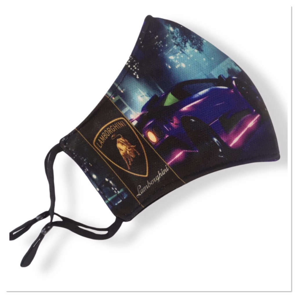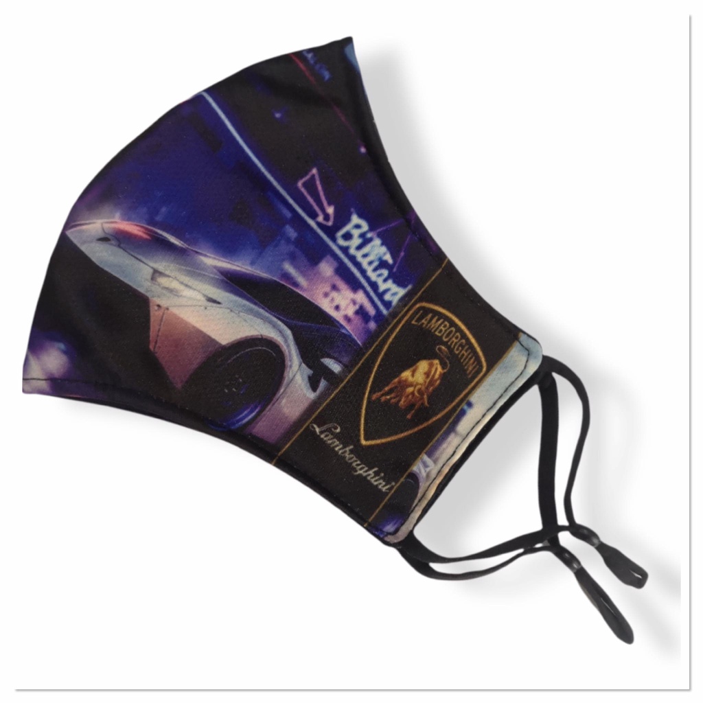 FACE MASK ADJUSTABLE SOFT COMFY EARLOOP LAMBORGHINI BLUE BLAZE
