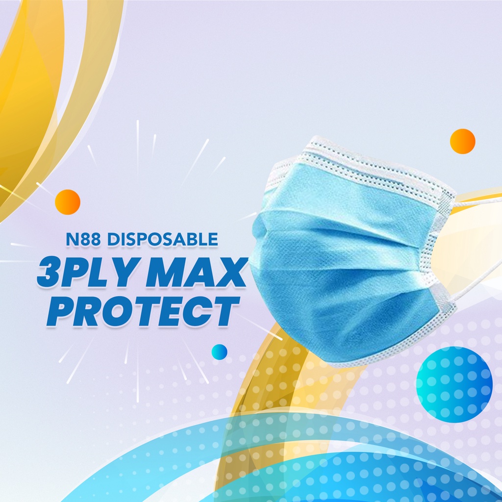FACE MASK N88 DISPOSABLE 3PLY MAX PROTECT 50PCS