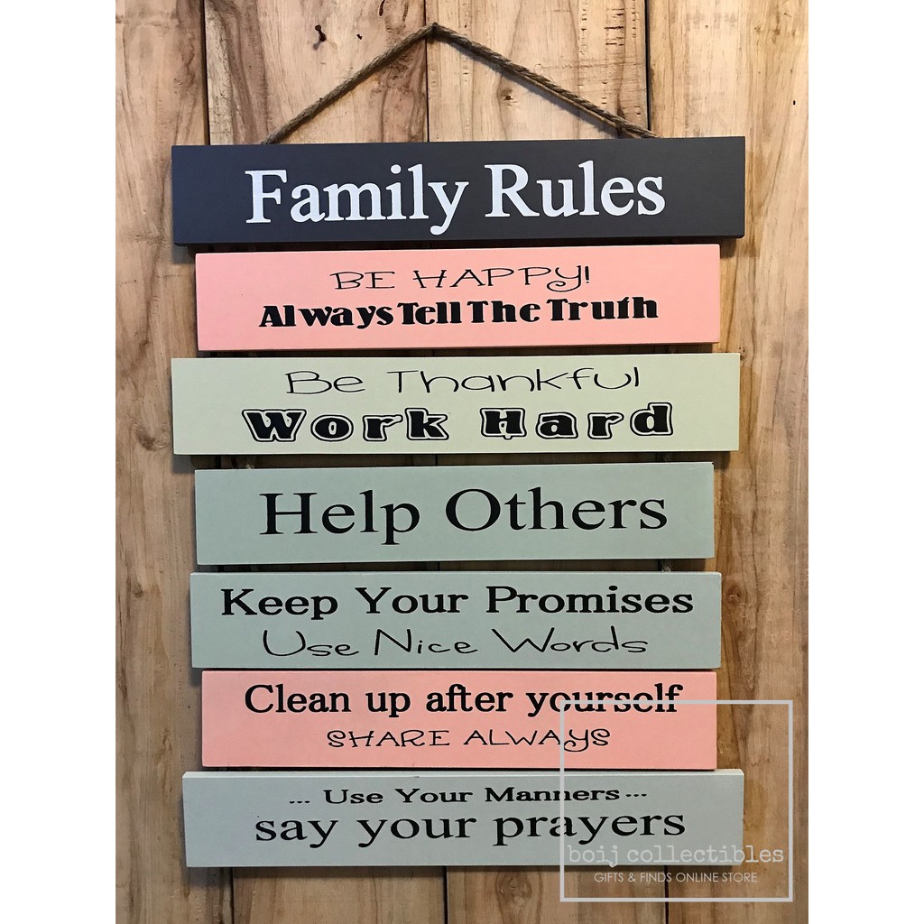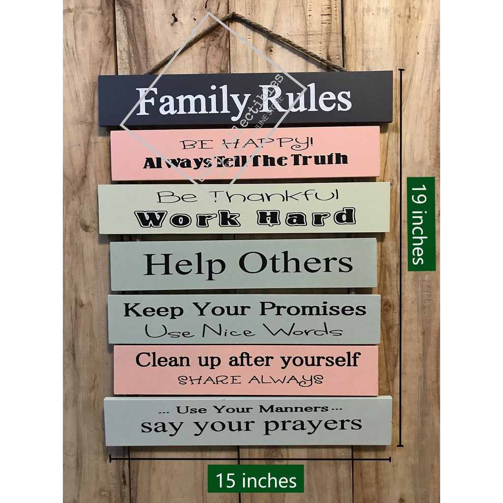 FAMILY RULES/KITCHEN RULES Wooden Wall Hang Display 19x15 inches