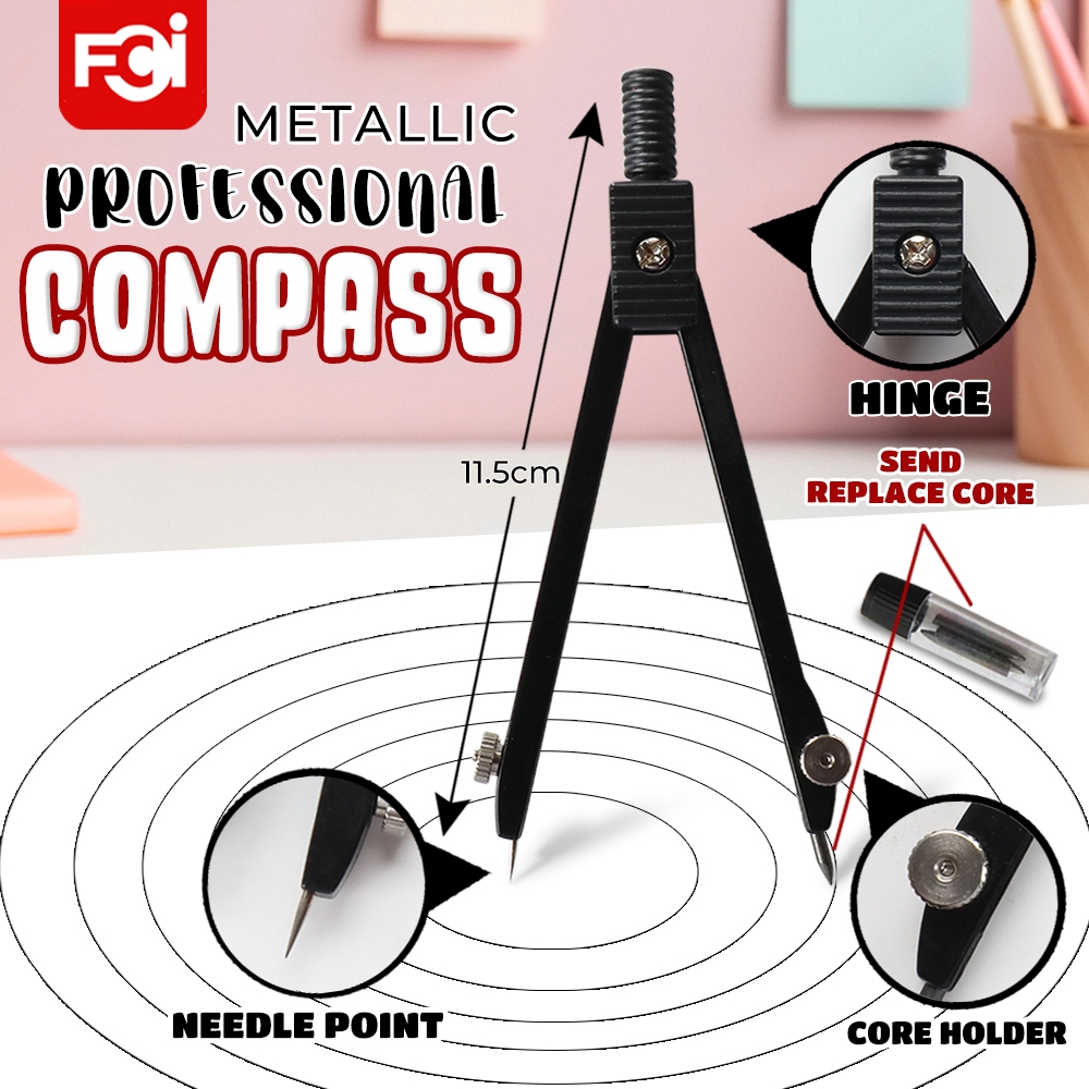 FCI Metal Compass with Pencil Math Circle Exam Drafting Compasses School Students Drafting Circle