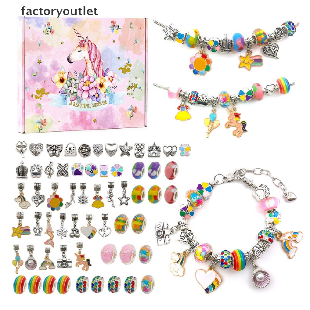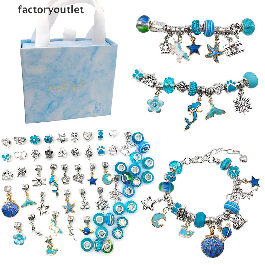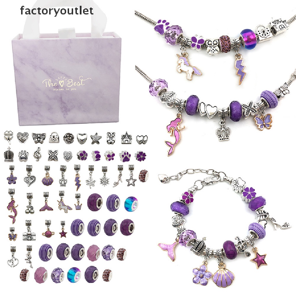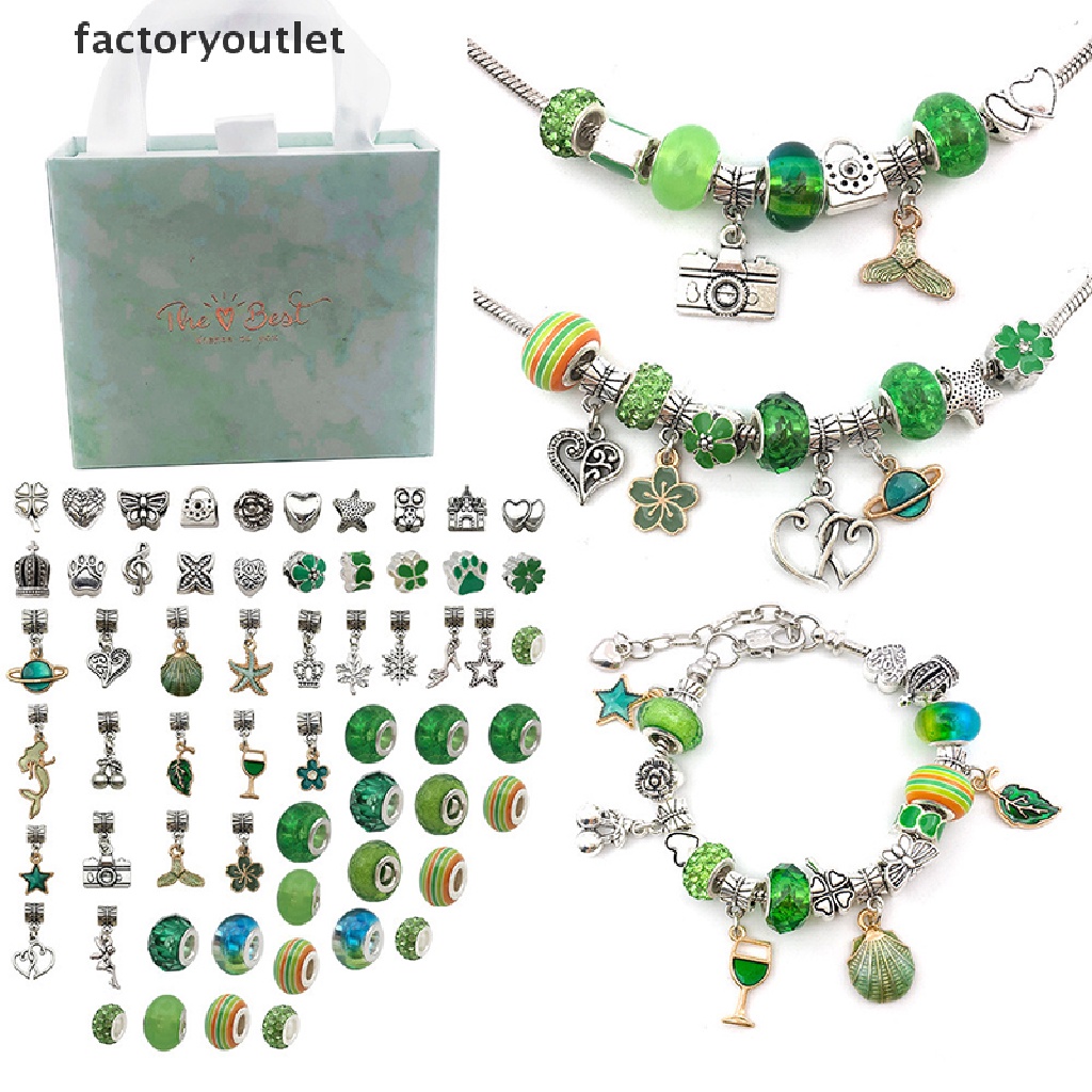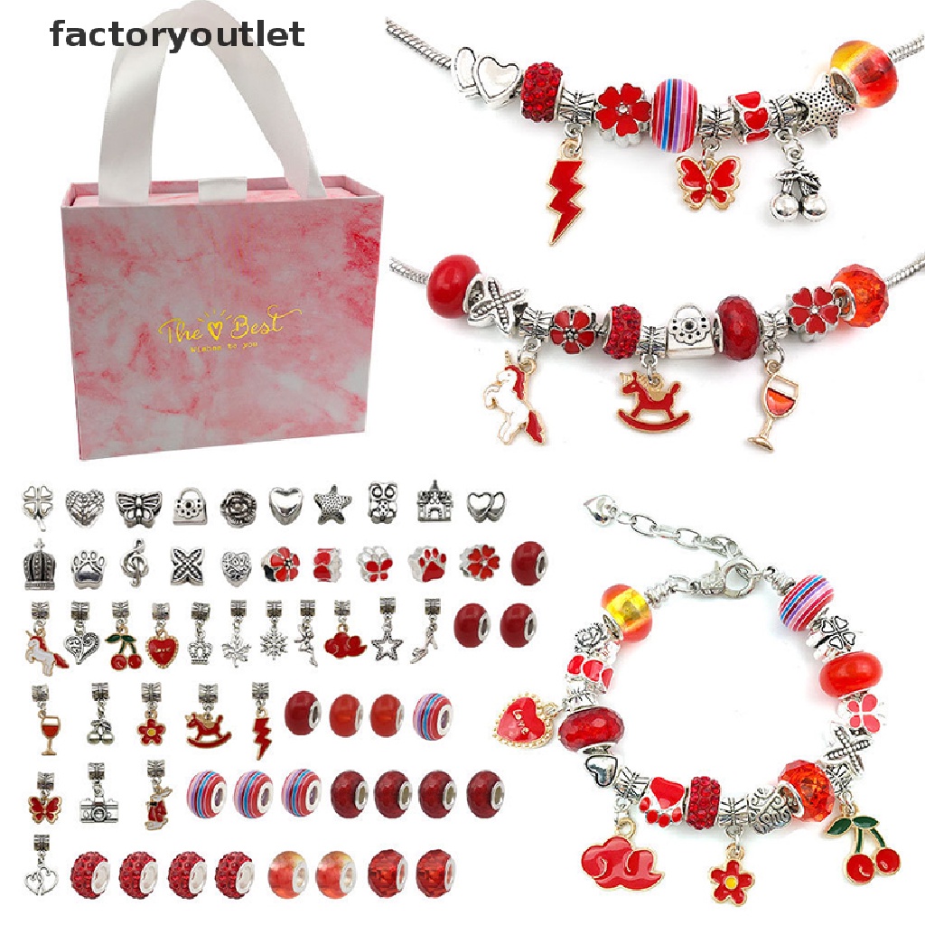 FCPH 64pcs DIY Charm Bracelet Gift Box Jewelry Making Kit with Beads Ch Pendants FCC