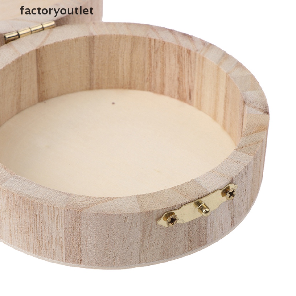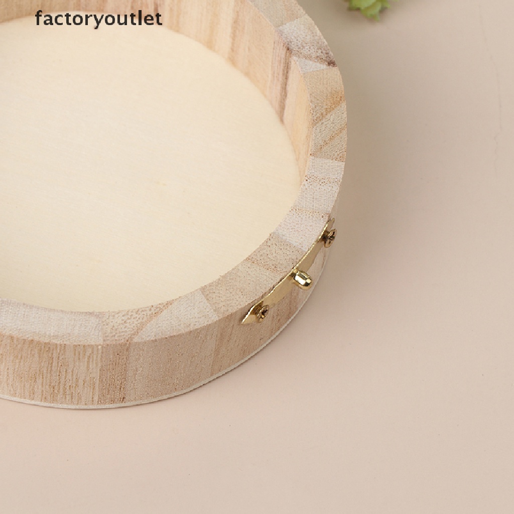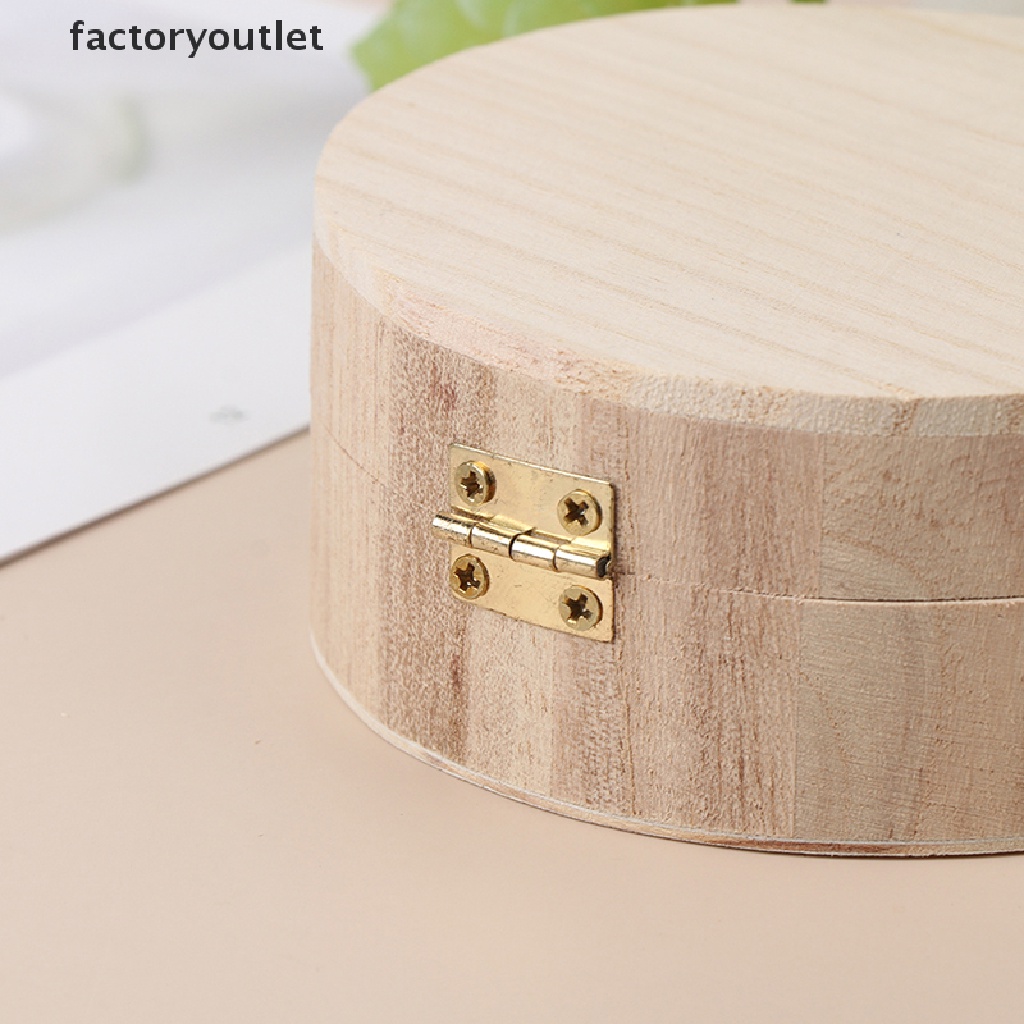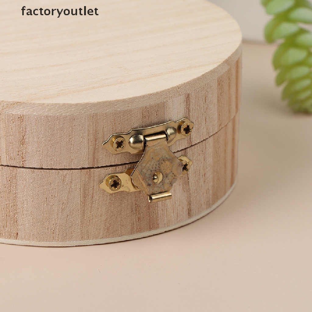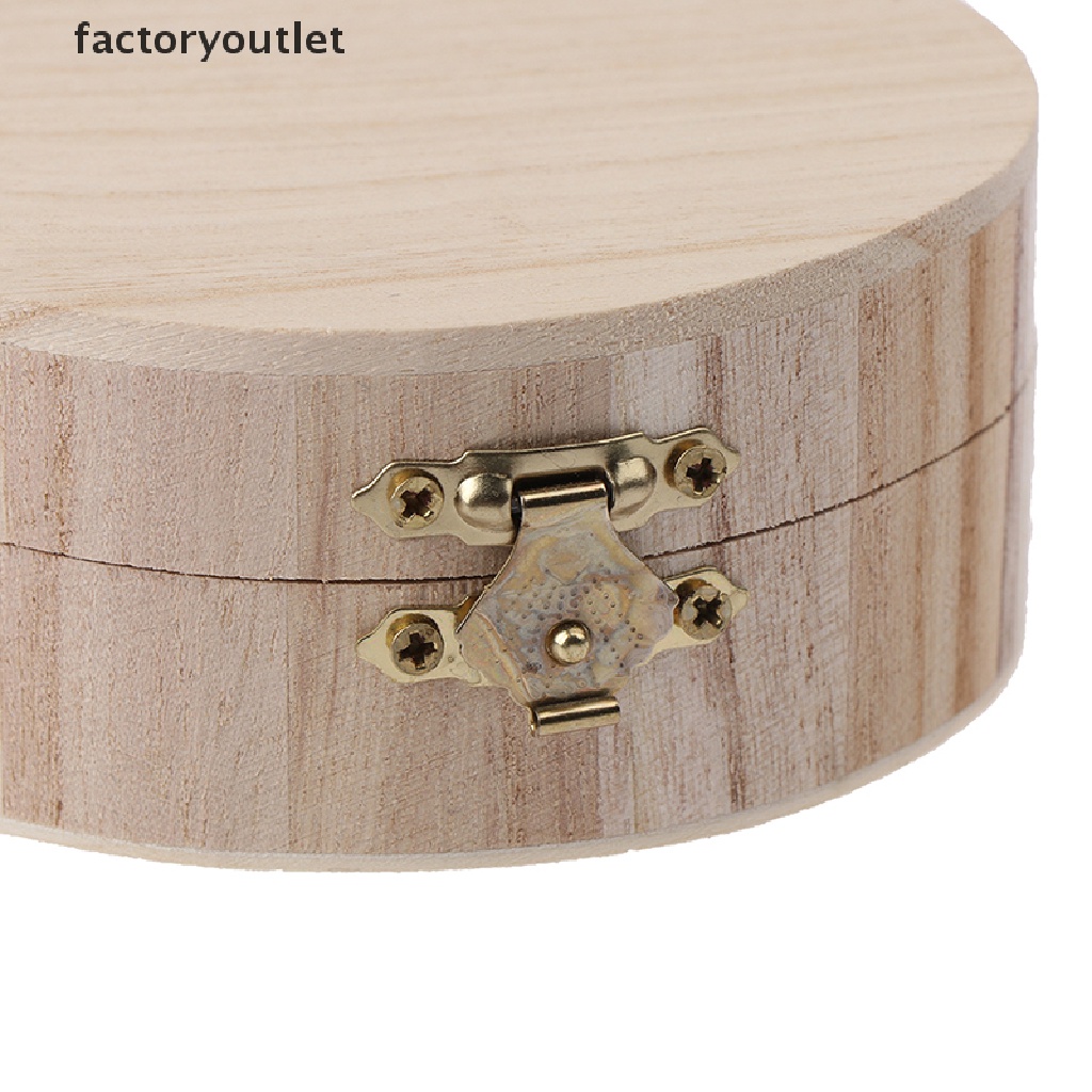 FCPH Vintage Round Wooden Jewelry Box Organizer Craft Mud Base Lid Lock Storage Case FCC